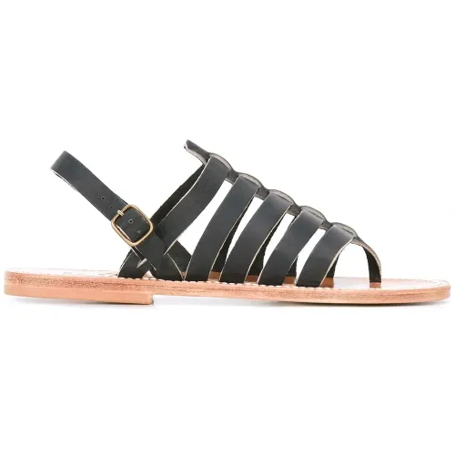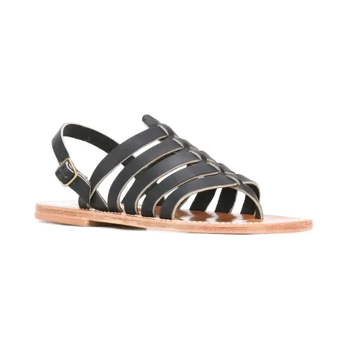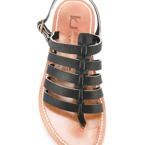Черные с бежевым кожаные сандалии 'Homer' с ремешками от K. Jacques.