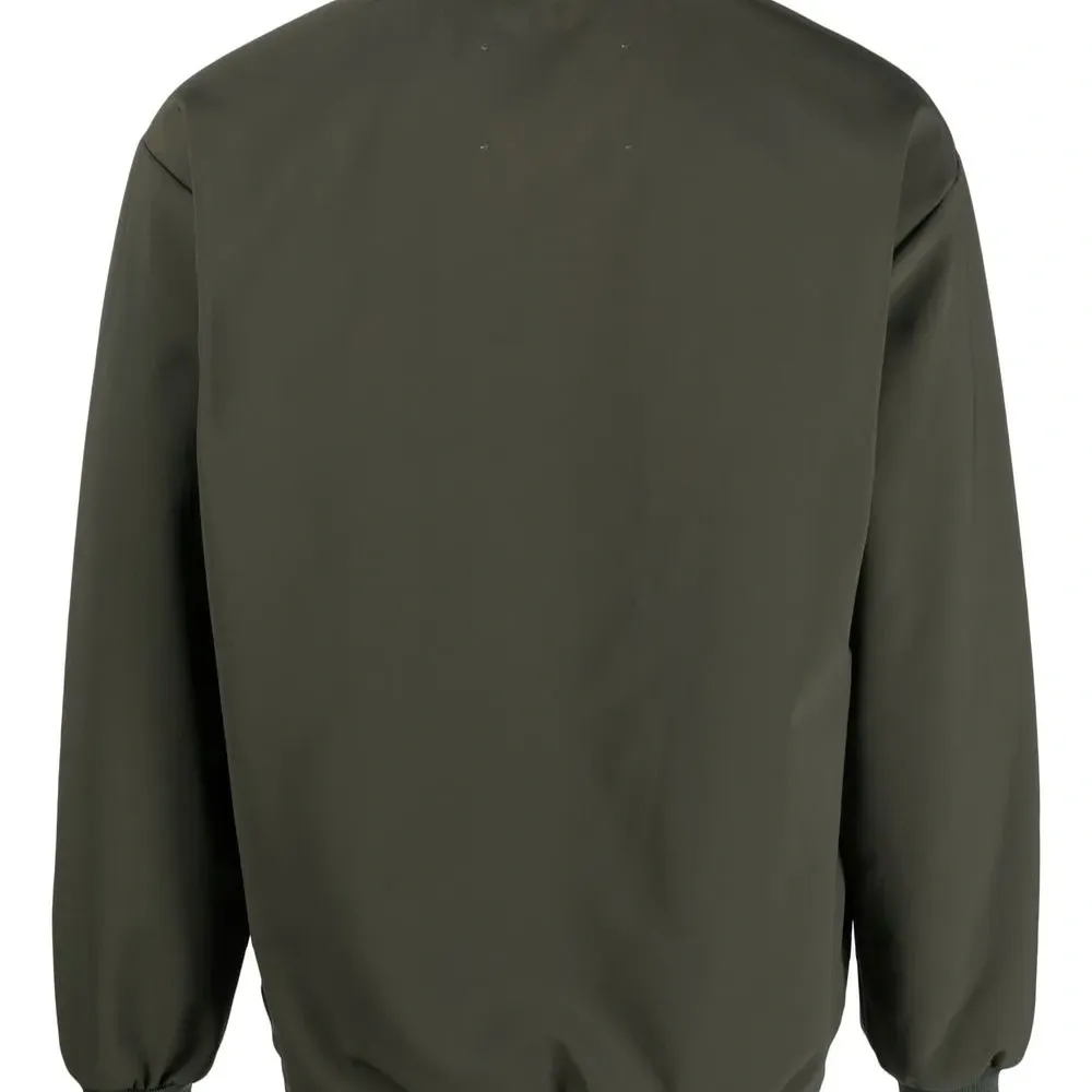 Оливковый, эластичный материал, карман на молнии спереди, полоски, круглый вырез, длинные рукава, рукава с узкими манжетами, отделка в рубчик и эластичный подол.