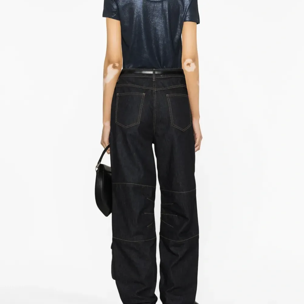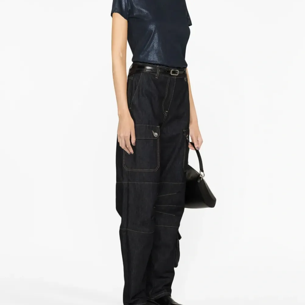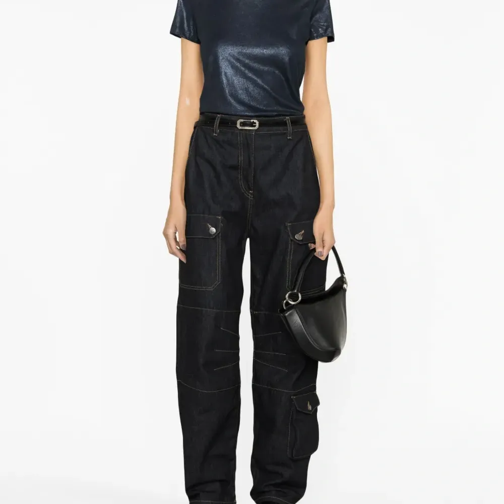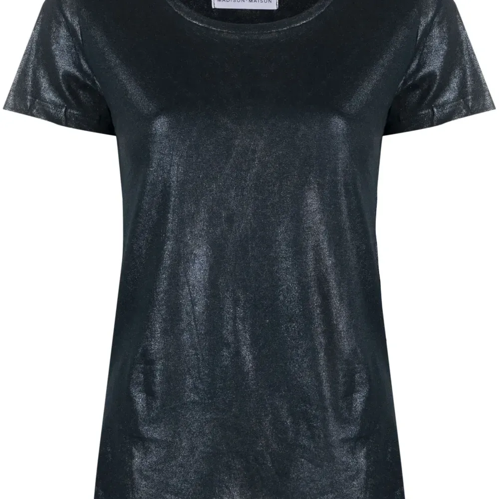 Темно-синий, органический хлопок, эффект металлик, круглый вырез, короткие рукава и прямой подол. Узнать больше о том, какие товары получают отметку «Ответственный выбор», можно из материала «Как мы оцениваем экологичность и этичность».