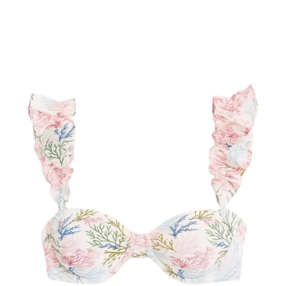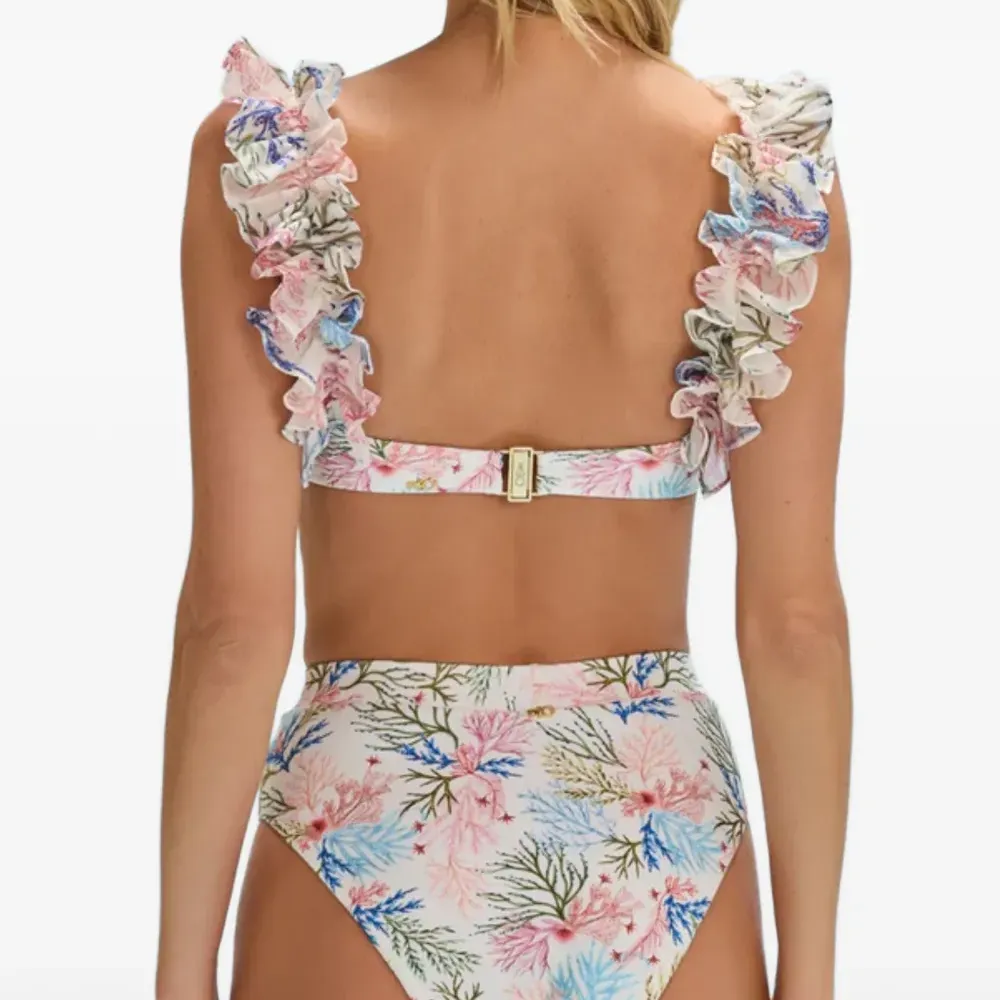 Off-White купальник с цветочным принтом, оборками и застёжкой. Пожалуйста, примерьте купальник поверх своего нижнего белья.