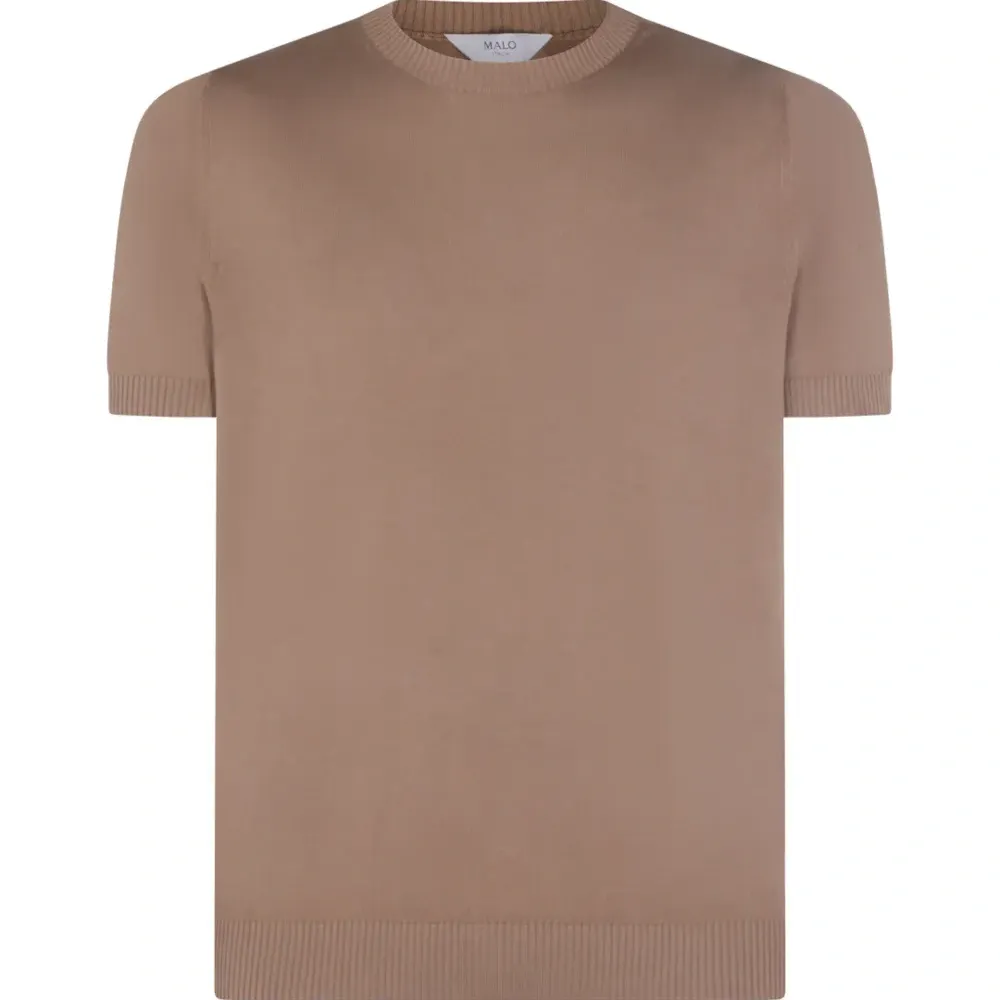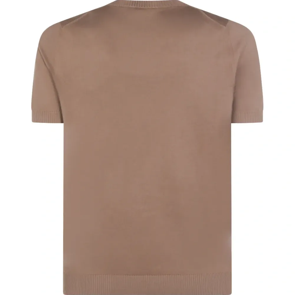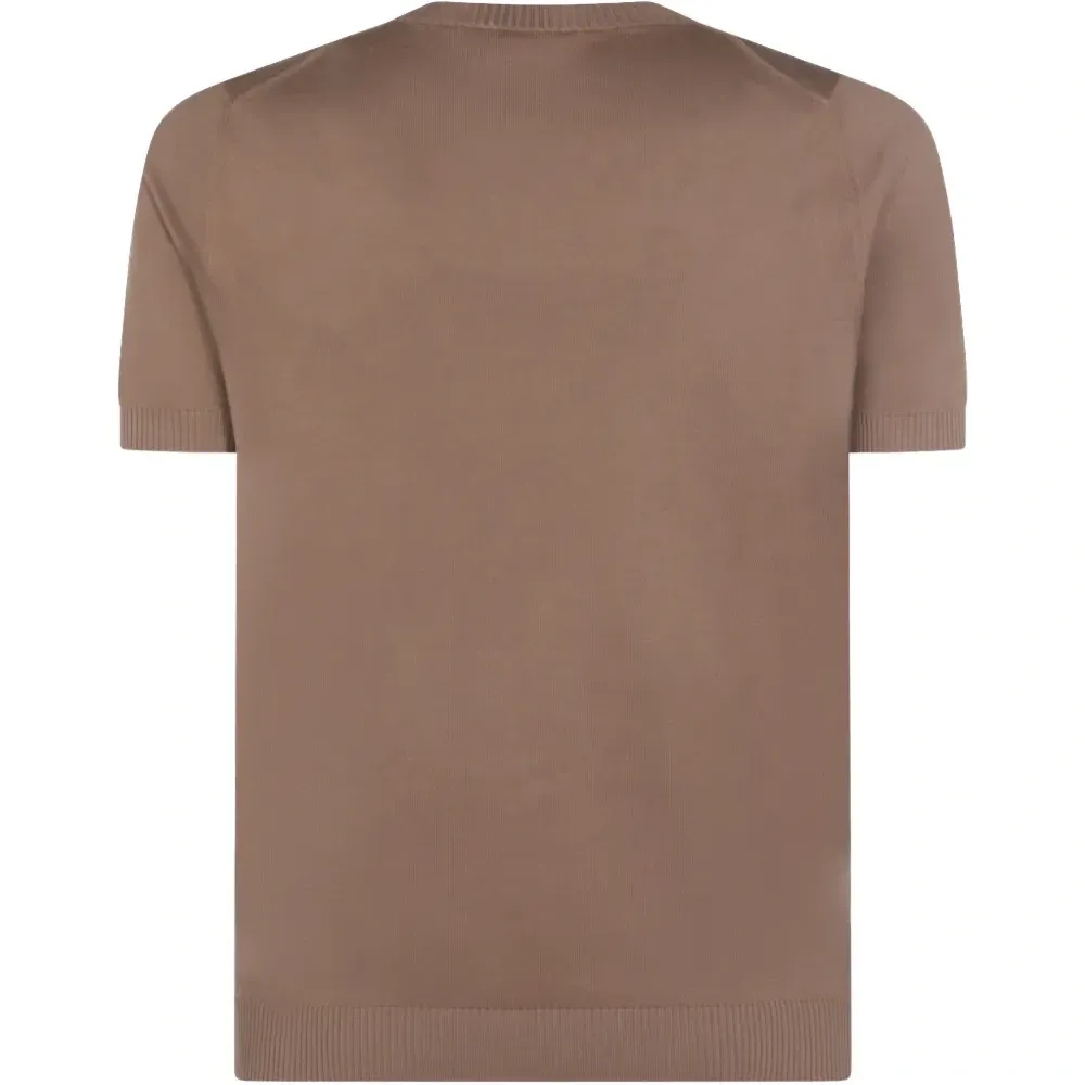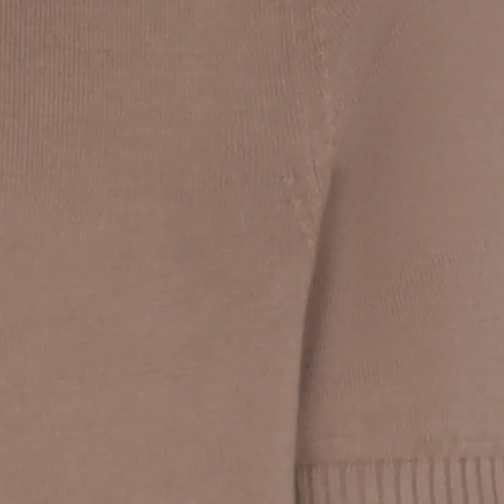 светло-коричневый вязаный топ с короткими рукавами, круглым вырезом и ребристой отделкой