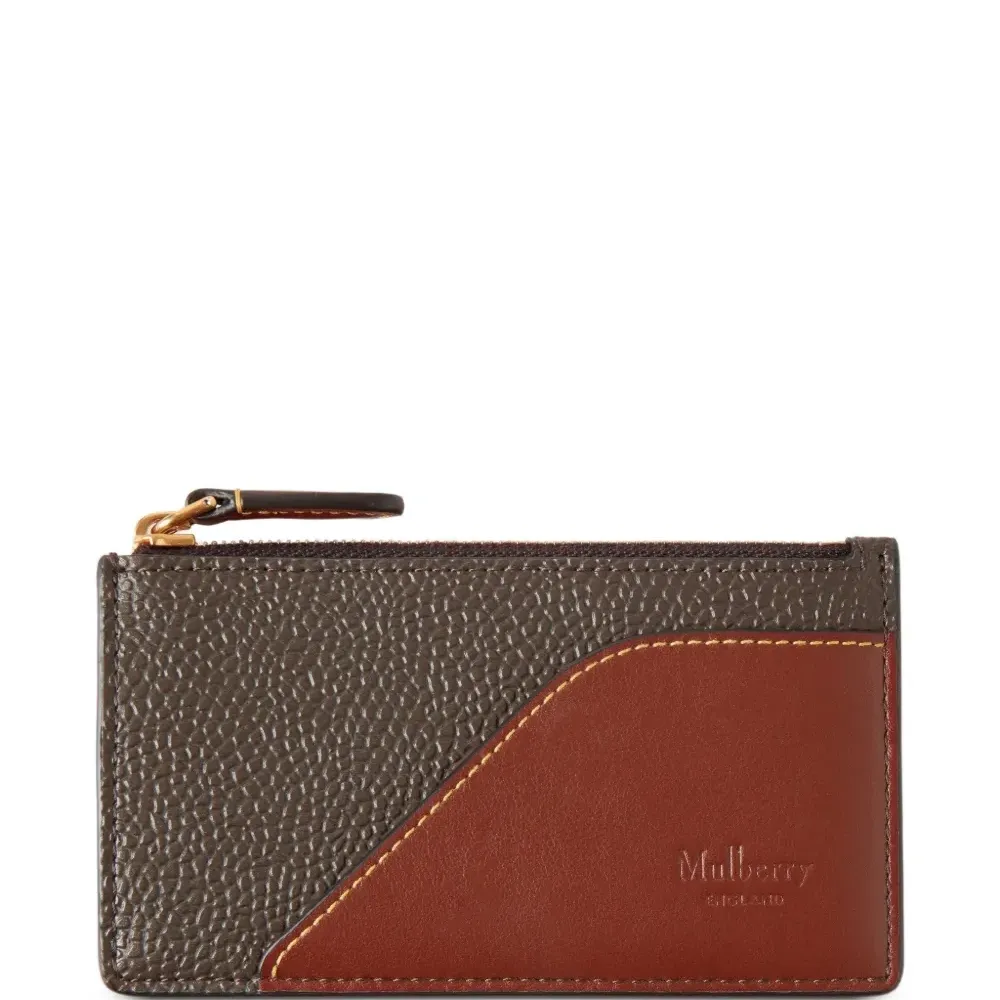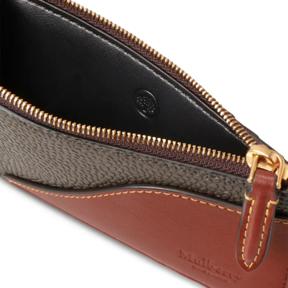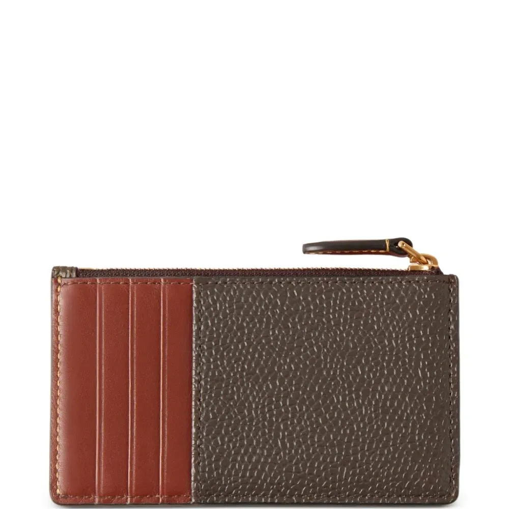 коричневый двухцветный дизайн, застёжка на молнию, карман, отделения для карт, контрастная прострочка