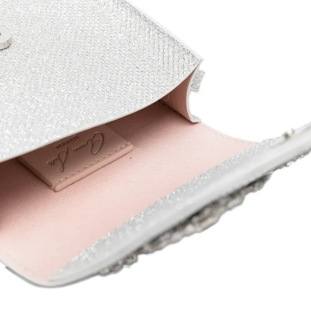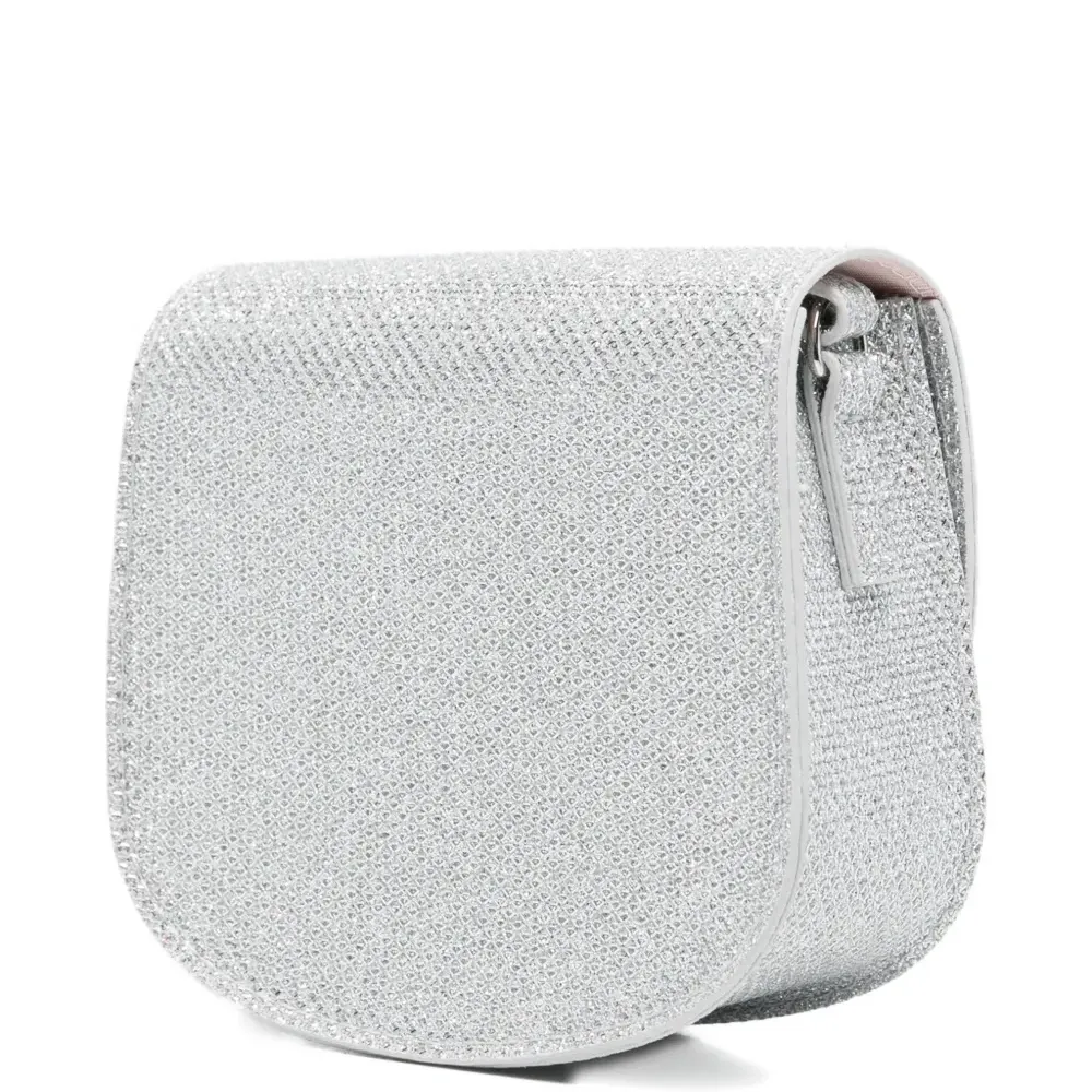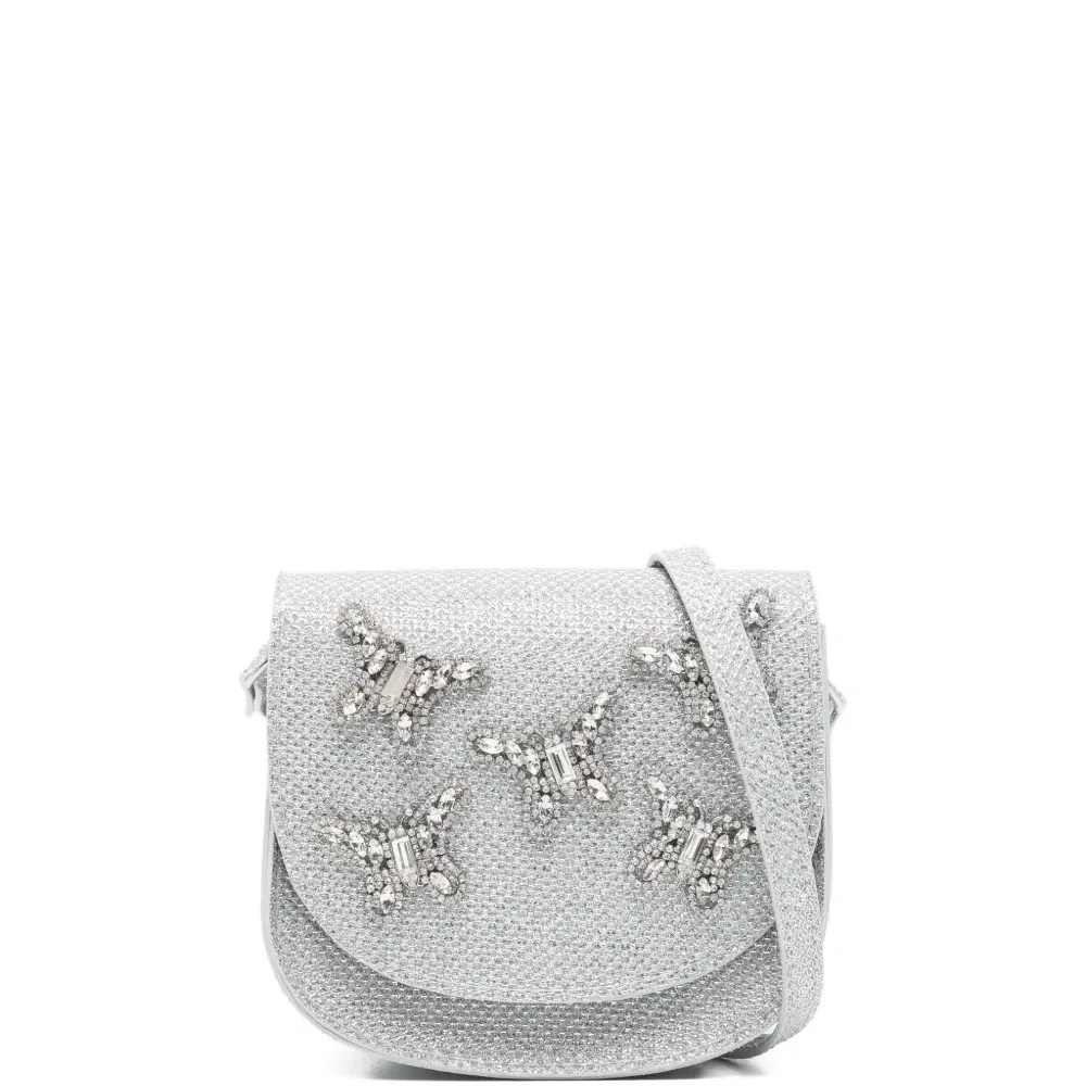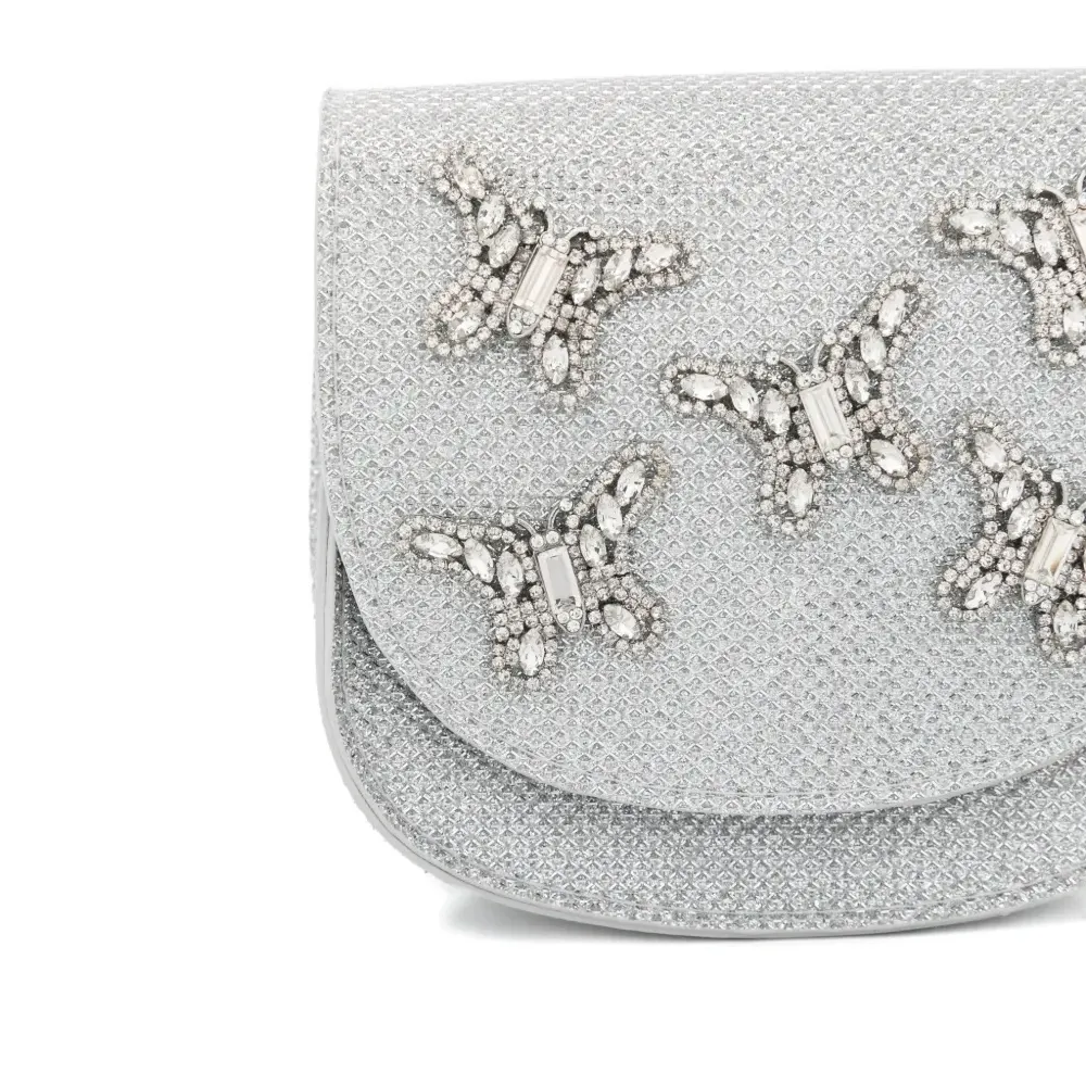 декор в виде бабочки серебристого цвета, регулируемый наплечный ремень, клапан сверху, внутренняя нашивка с логотипом