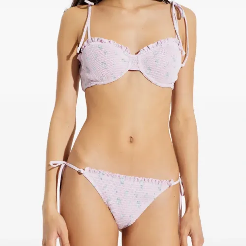 сиренево-ледяной комплект из двух предметов с цветочным принтом, оборками и завязками