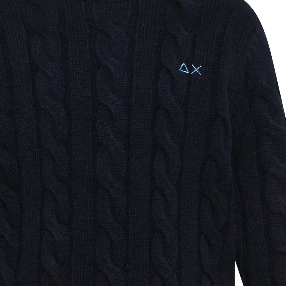синий джемпер с круглым вырезом и длинными рукавами вязаный косами