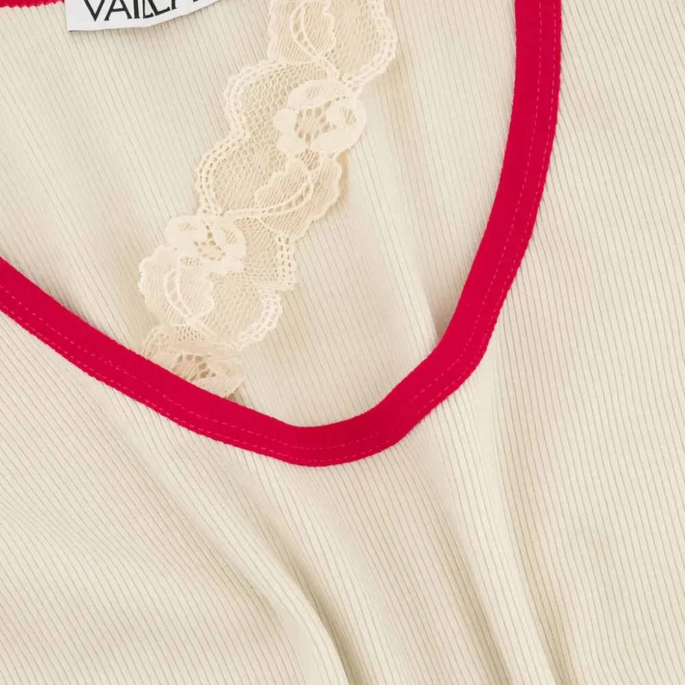 Топ в рубчик с кружевной отделкой