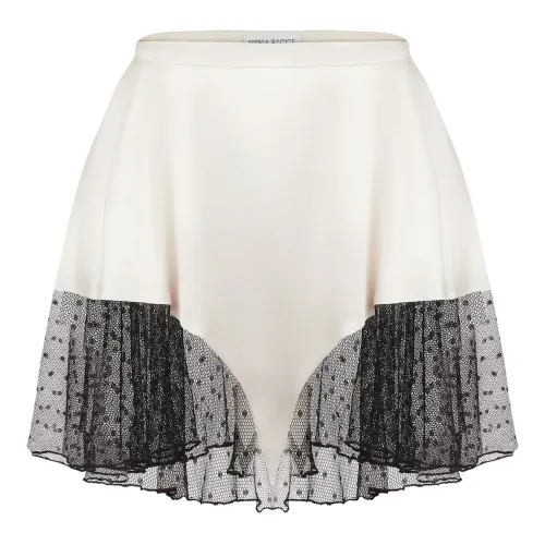 Атласная юбка мини с кружевом
