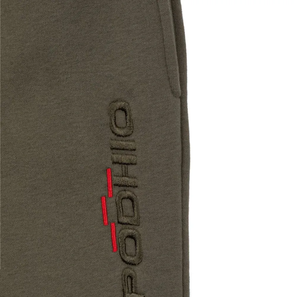 цвет хаки, застёжка на шнурке, боковые карманы, эластичный пояс, эластичные манжеты, вышивка