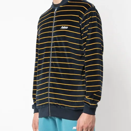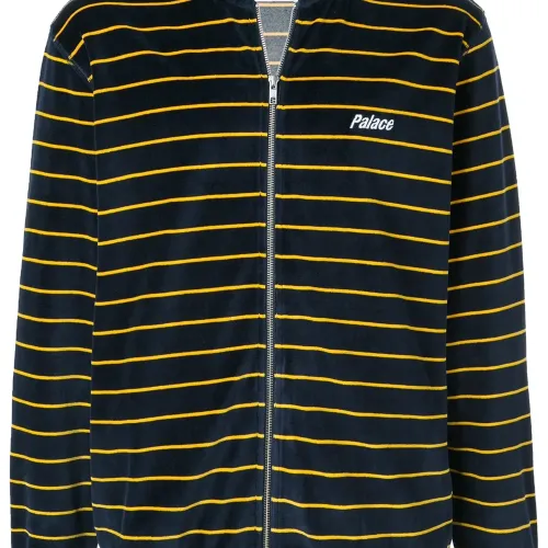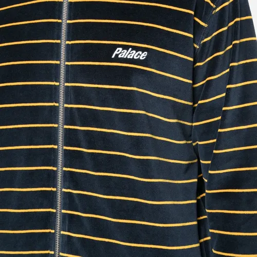 Бархатная толстовка на молнии от Palace. Длинные рукава, эластичные манжеты, застежка на молнии спереди, полосатый узор и вышитый логотип спереди.