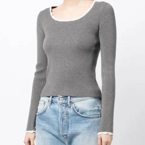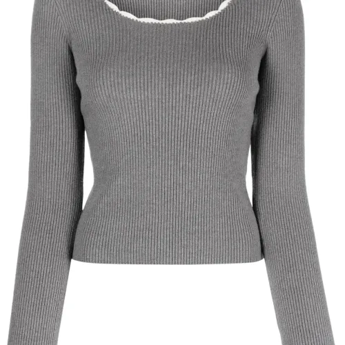 Scallop-collar ribbed jumper