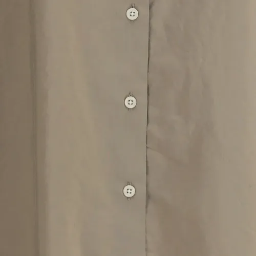 грязно-коричневый цвет, застёгивается на пуговицы, воротник-пуан, длинные рукава, манжеты на пуговицах