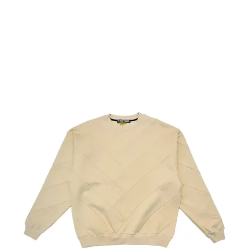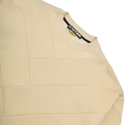 кремовые диагональные полосы, ребристые отделки, круглый вырез, длинные рукава