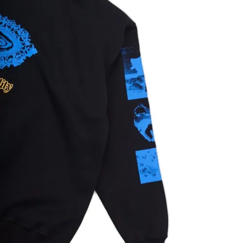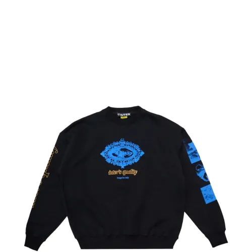 черный свитшот с круглым вырезом и разноцветными принтами