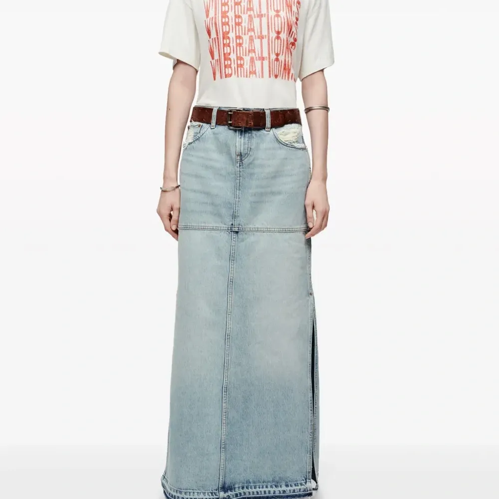 Джинсовая юбка макси с разрезом