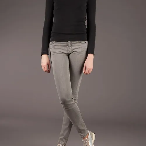 Серые эластичные хлопковые джинсы кроя скинни от J Brand.