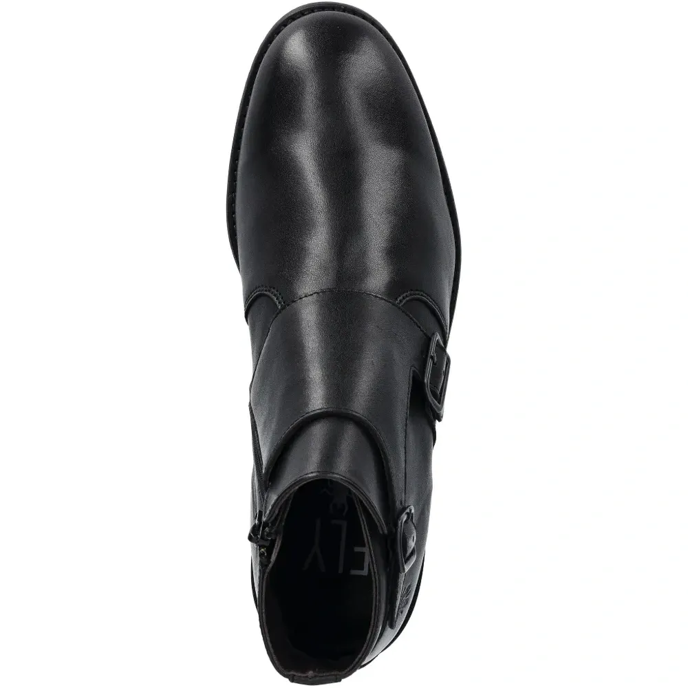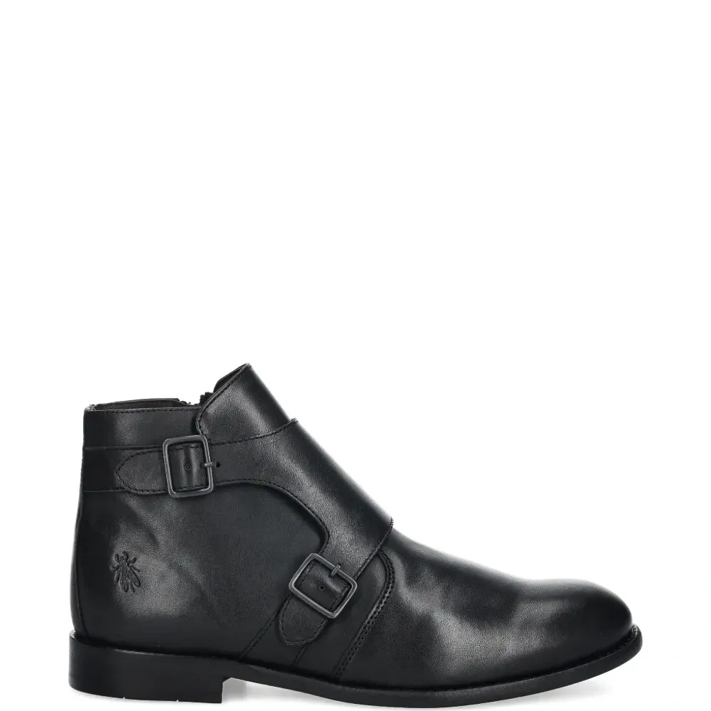 чёрный цвет, пряжка в отделке, застёжка-молния сбоку, круглый носок, однотонная отстрочка