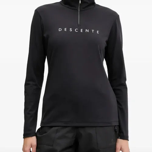 черная с длинными рукавами, застежкой-молнией, высоким воротником, принтом-логотипом и однотонной прострочкой