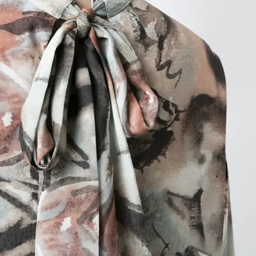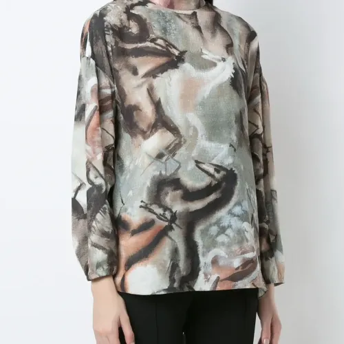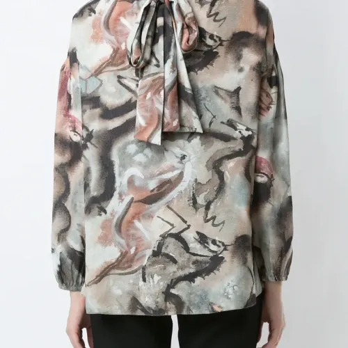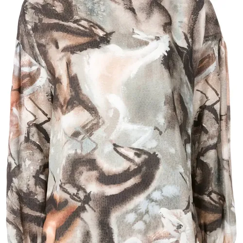 Блузка Hipismo с принтом от Olympiah. Круглый вырез, длинные рукава, застежка на завязке сзади и прямой крой.
