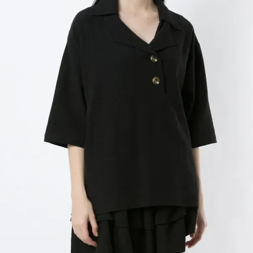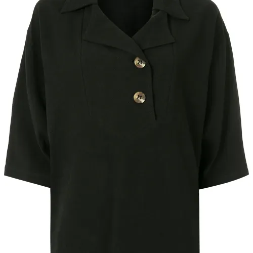 Блузка Zuzu на пуговицах от Olympiah. V-образный вырез с запахом, планка на пуговицах спереди, рукава по локоть и прямой крой. Цвет: черный.