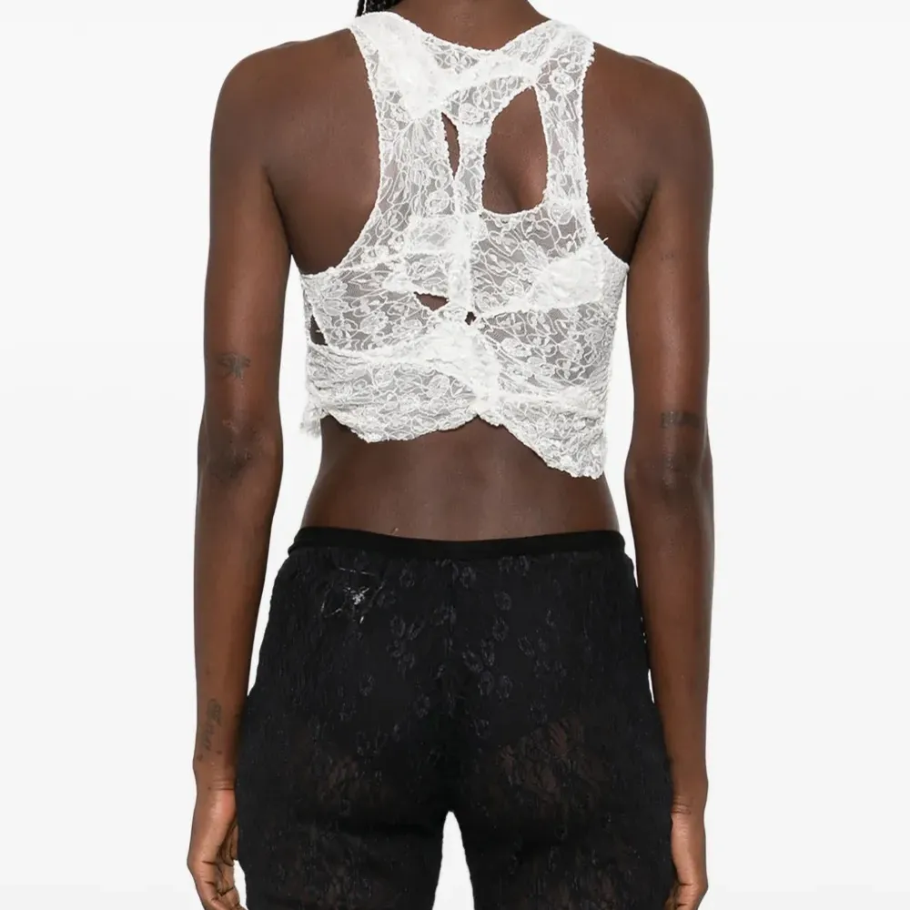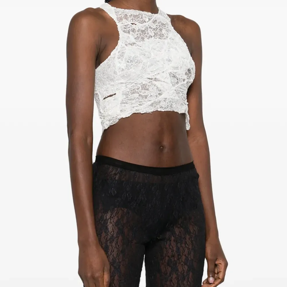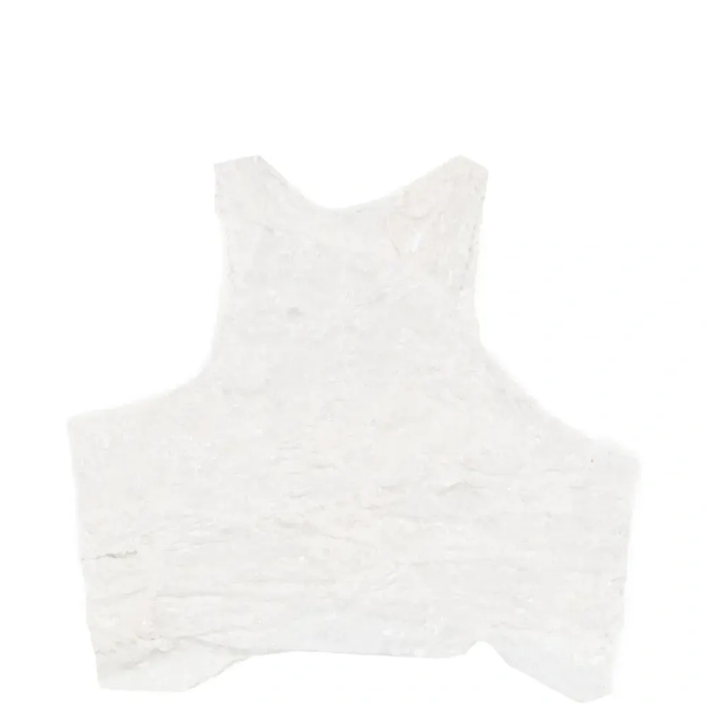 белый топ без рукавов с оборками и круглым вырезом