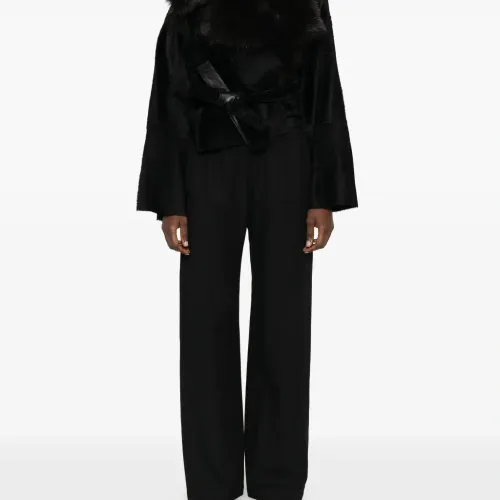 черные широкие брюки с прямым краем и эластичным поясом