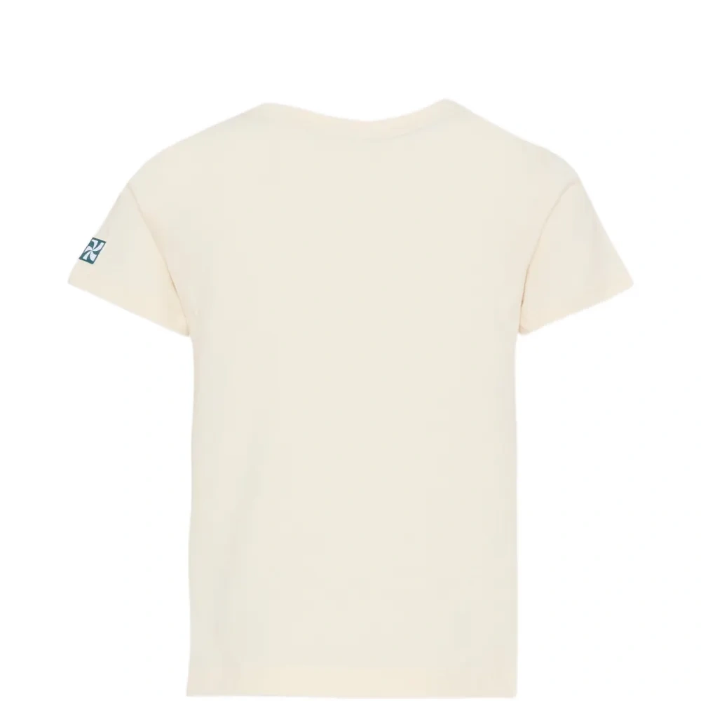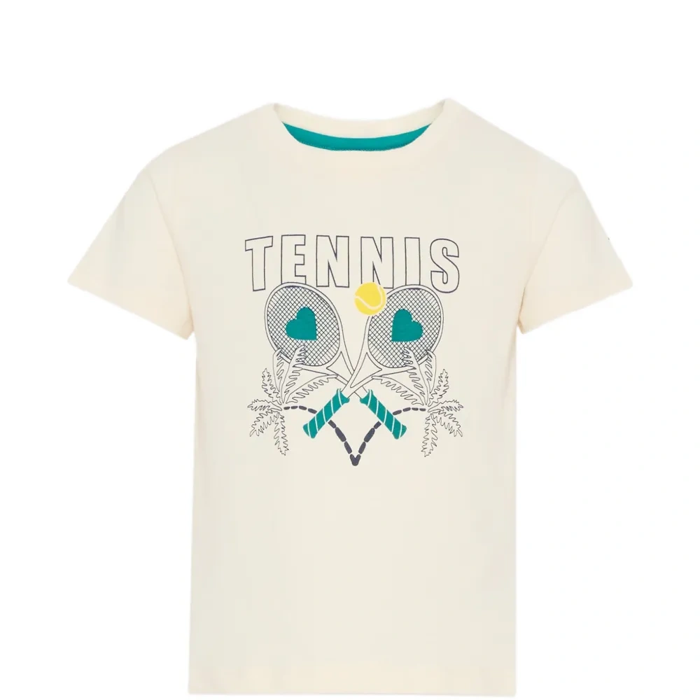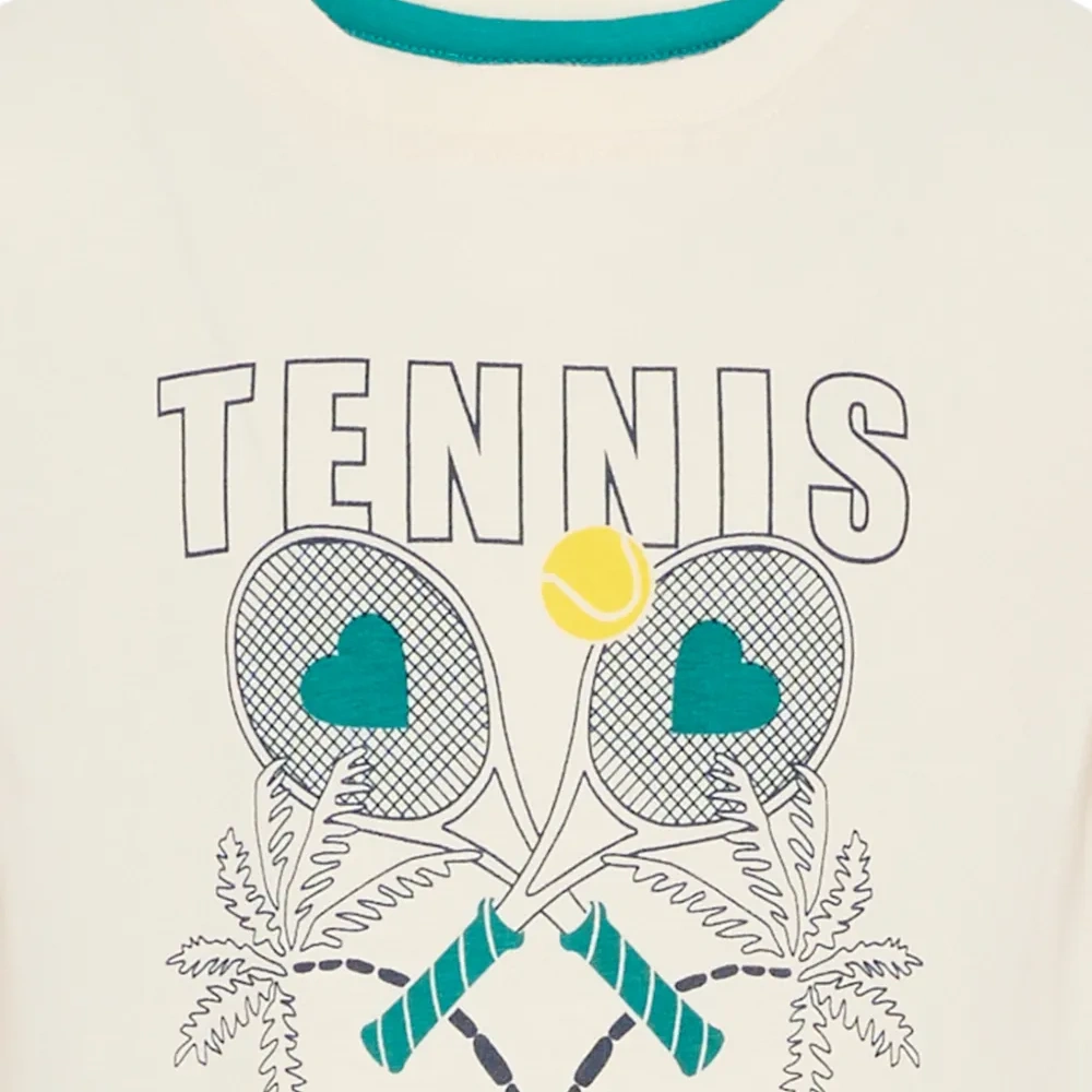 Айворий (слоновая кость) футболка с теннисным принтом, круглым вырезом и короткими рукавами
