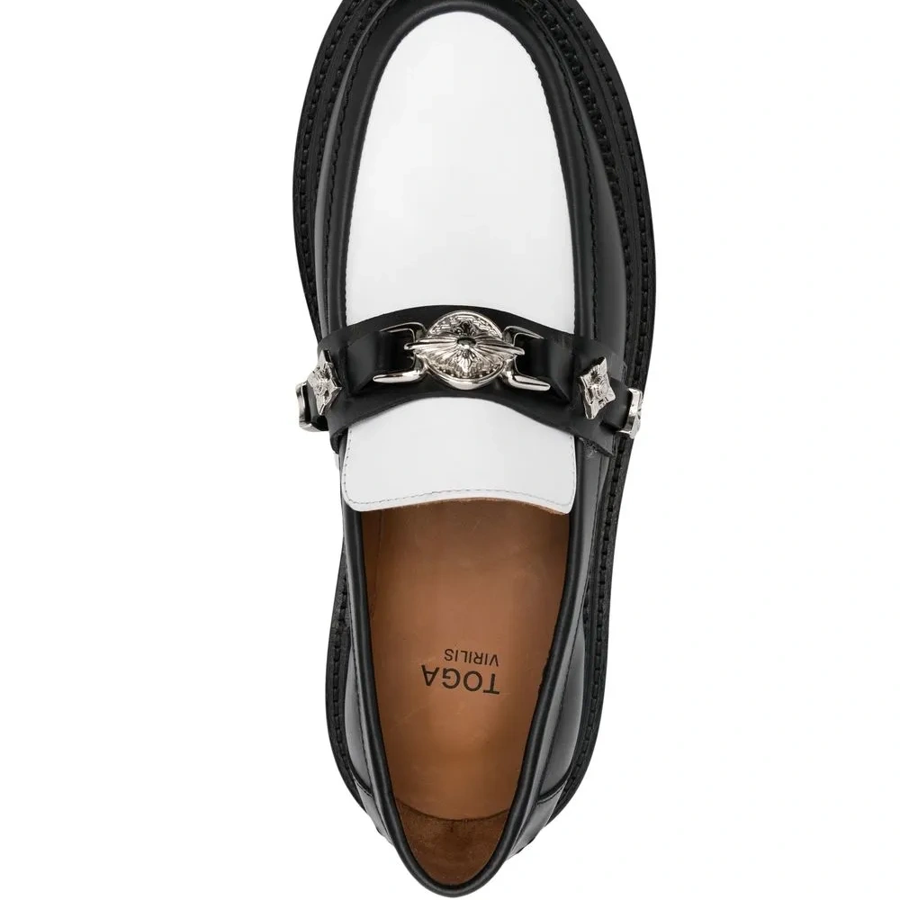 Белый/черный, сочетание двух оттенков, миндалевидный носок и модель без застежки.