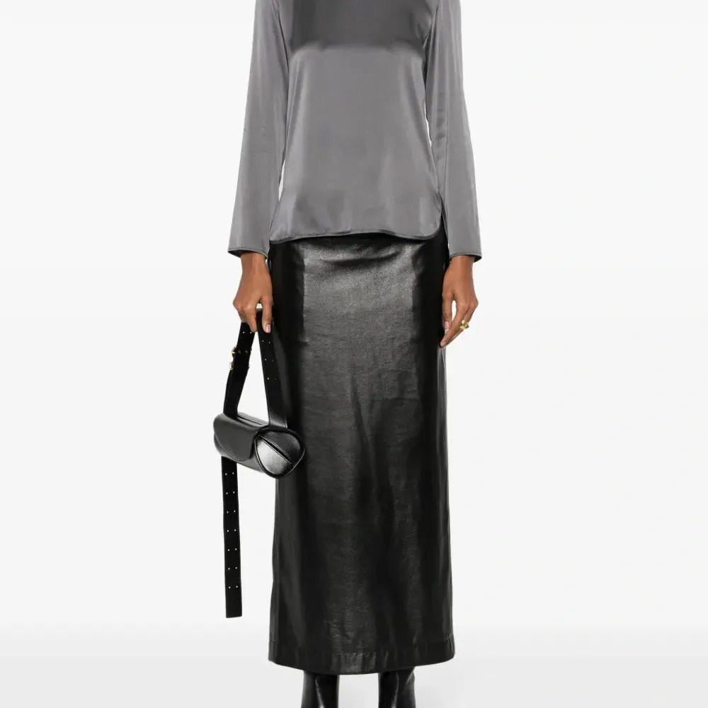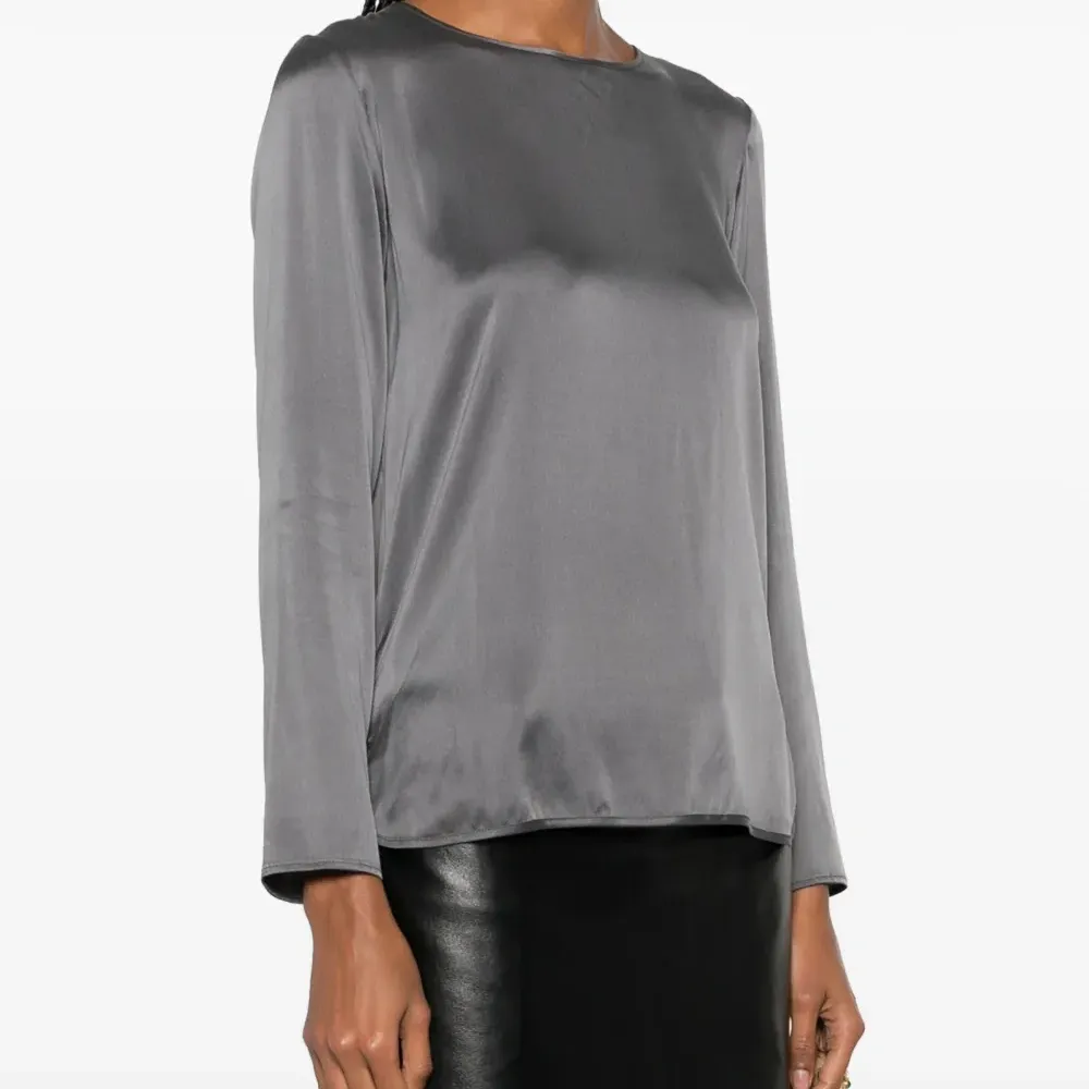 Атласная блузка с круглым вырезом