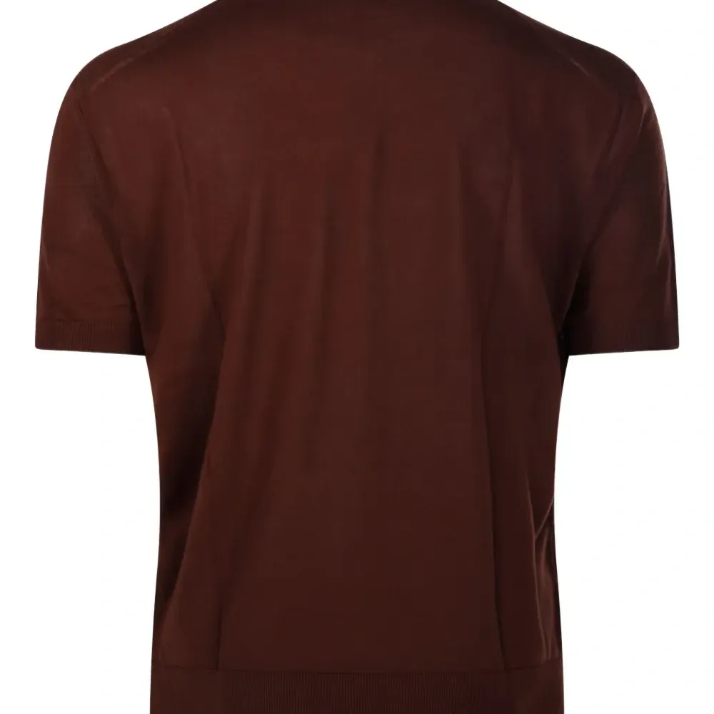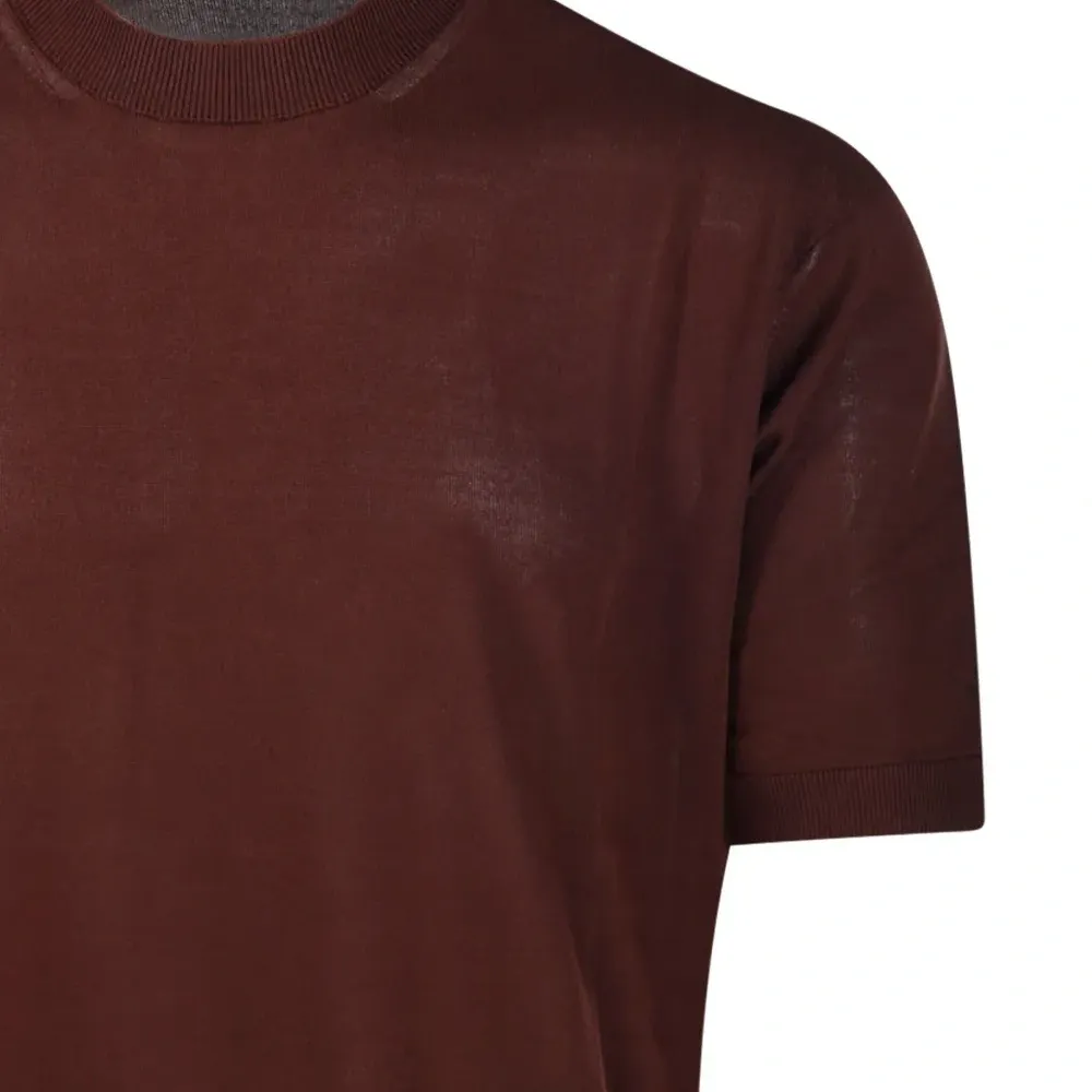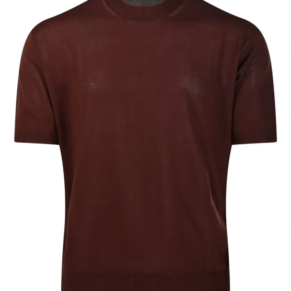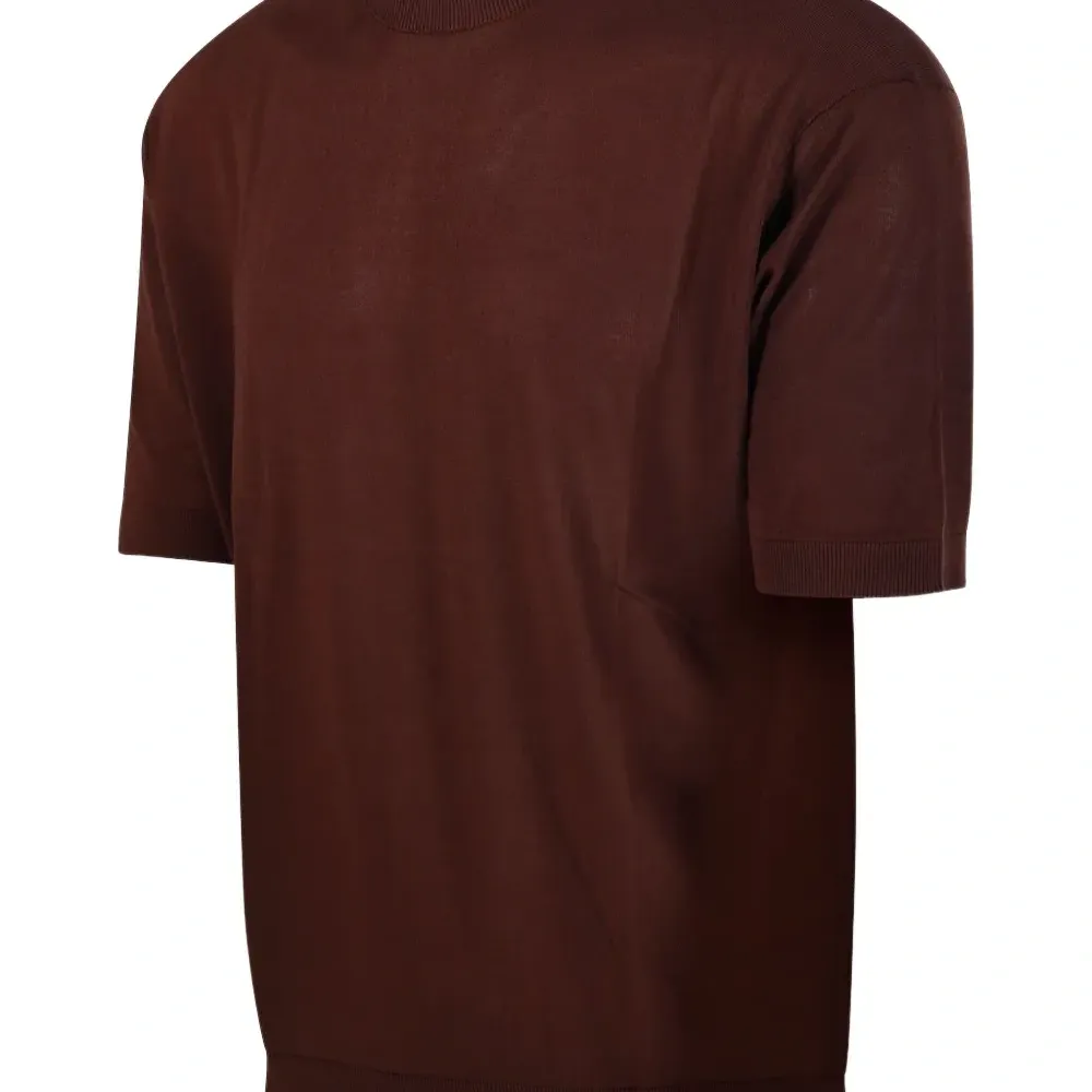 коричневый цвет, ребристый низ, ребристые манжеты, круглый вырез, короткие рукава