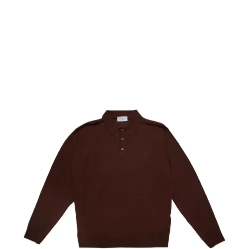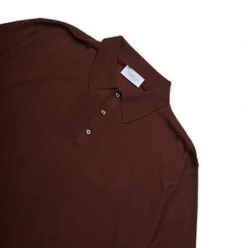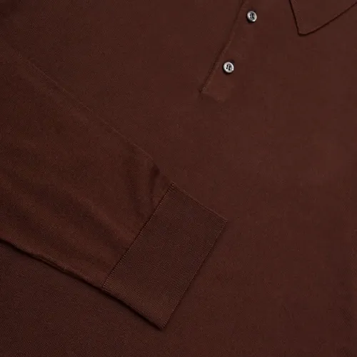 коричневая рубашка на пуговицах с длинными рукавами и отложным воротником поло
