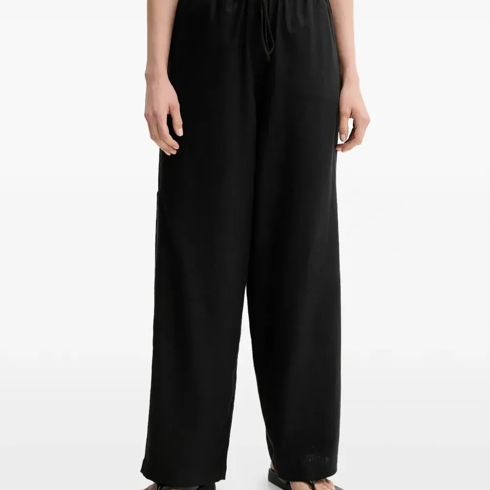 Льняные брюки с завязками и карманами
