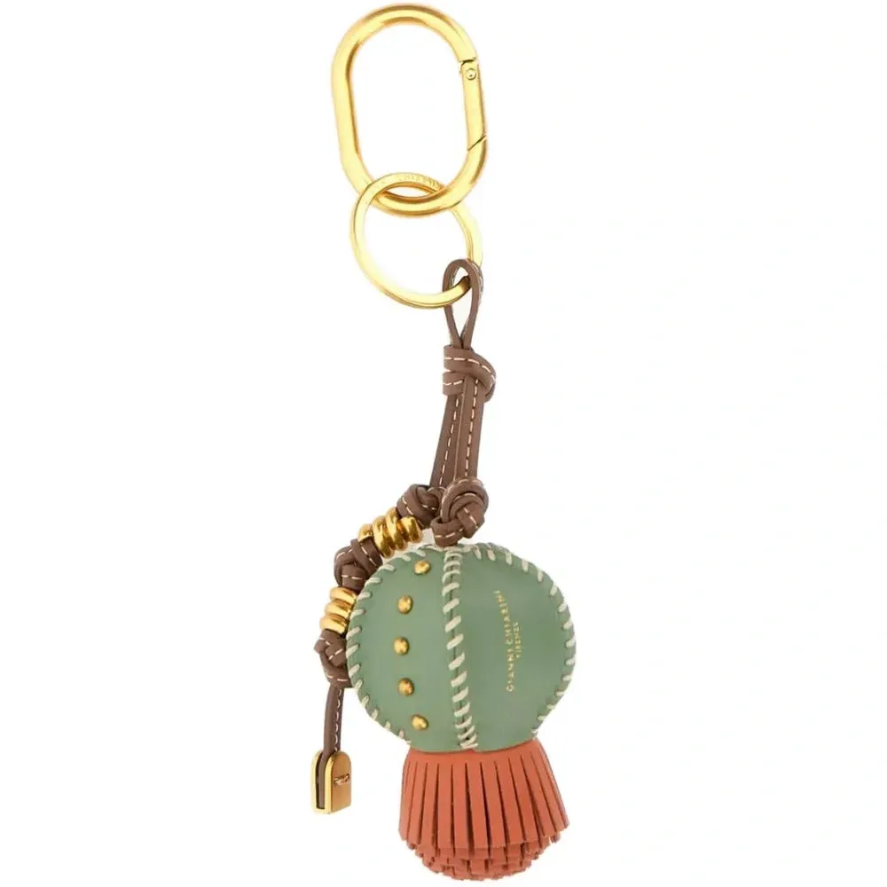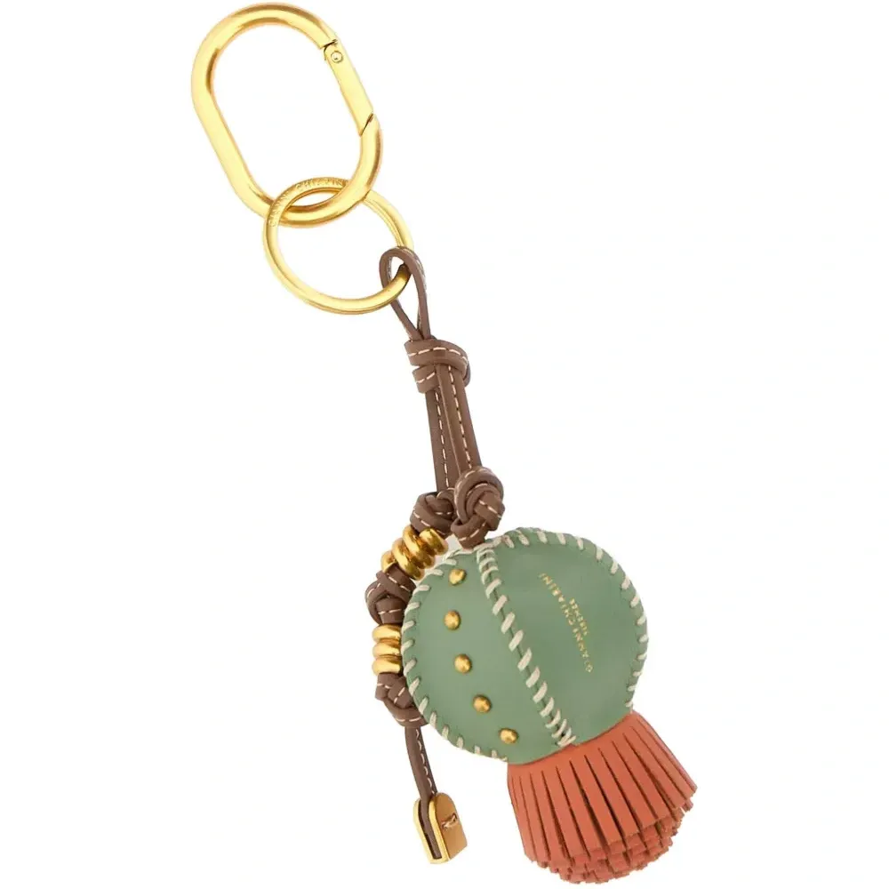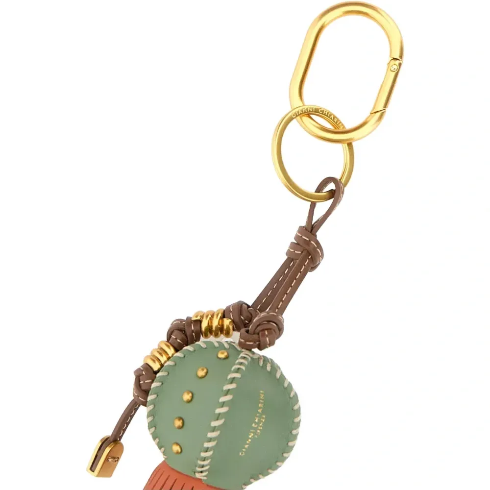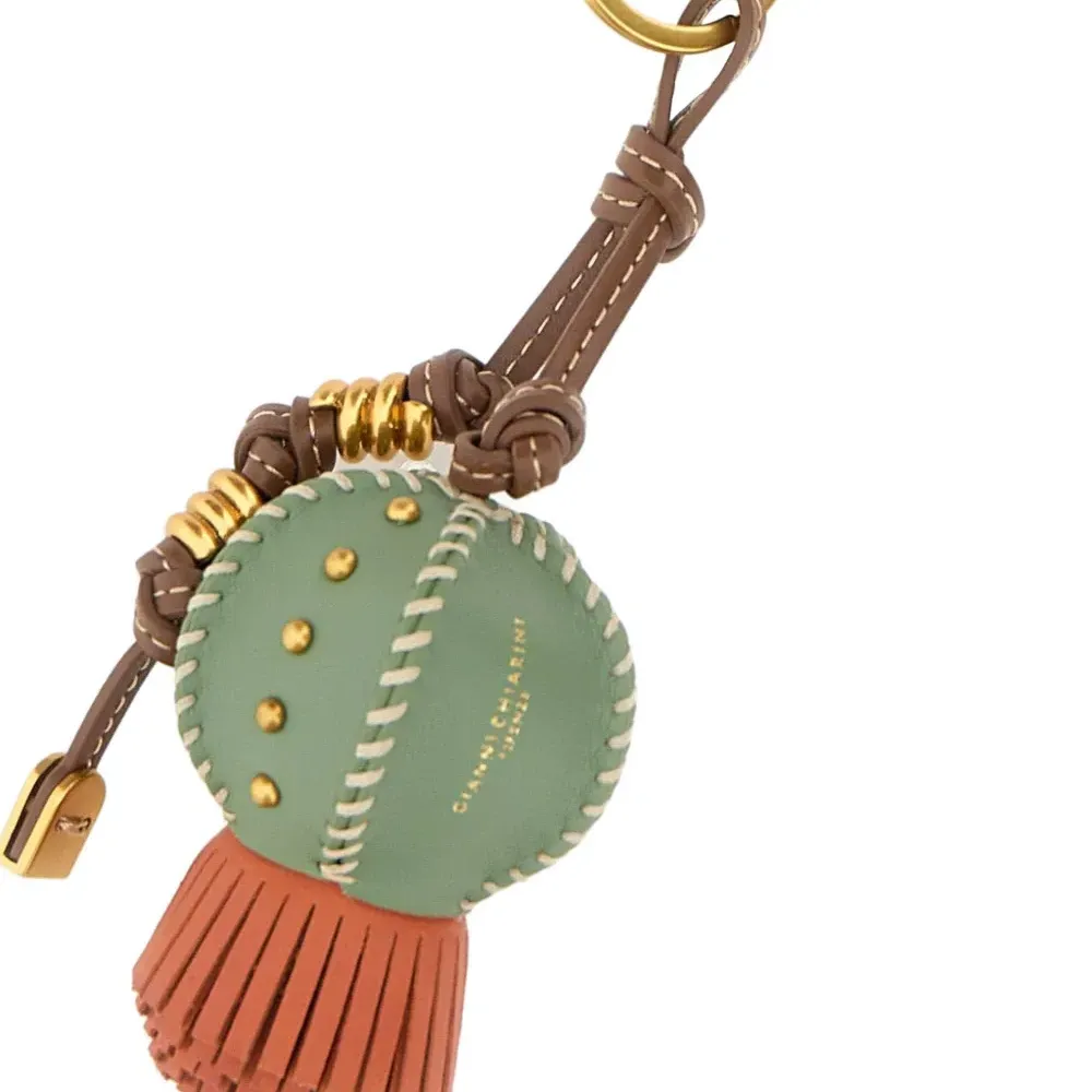 коричневый и зелёный карабин с отделкой заклёпками, гравировкой логотипа, узлом и кисточками