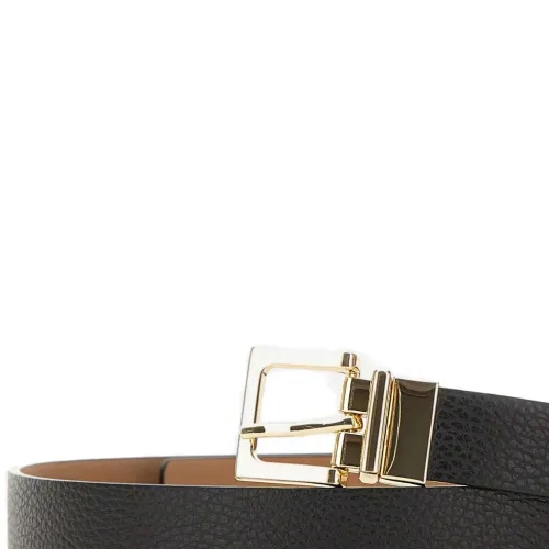 черный двусторонний ремень с зернистой текстурой, пряжкой золотистого цвета, квадратной пряжкой, из кожи