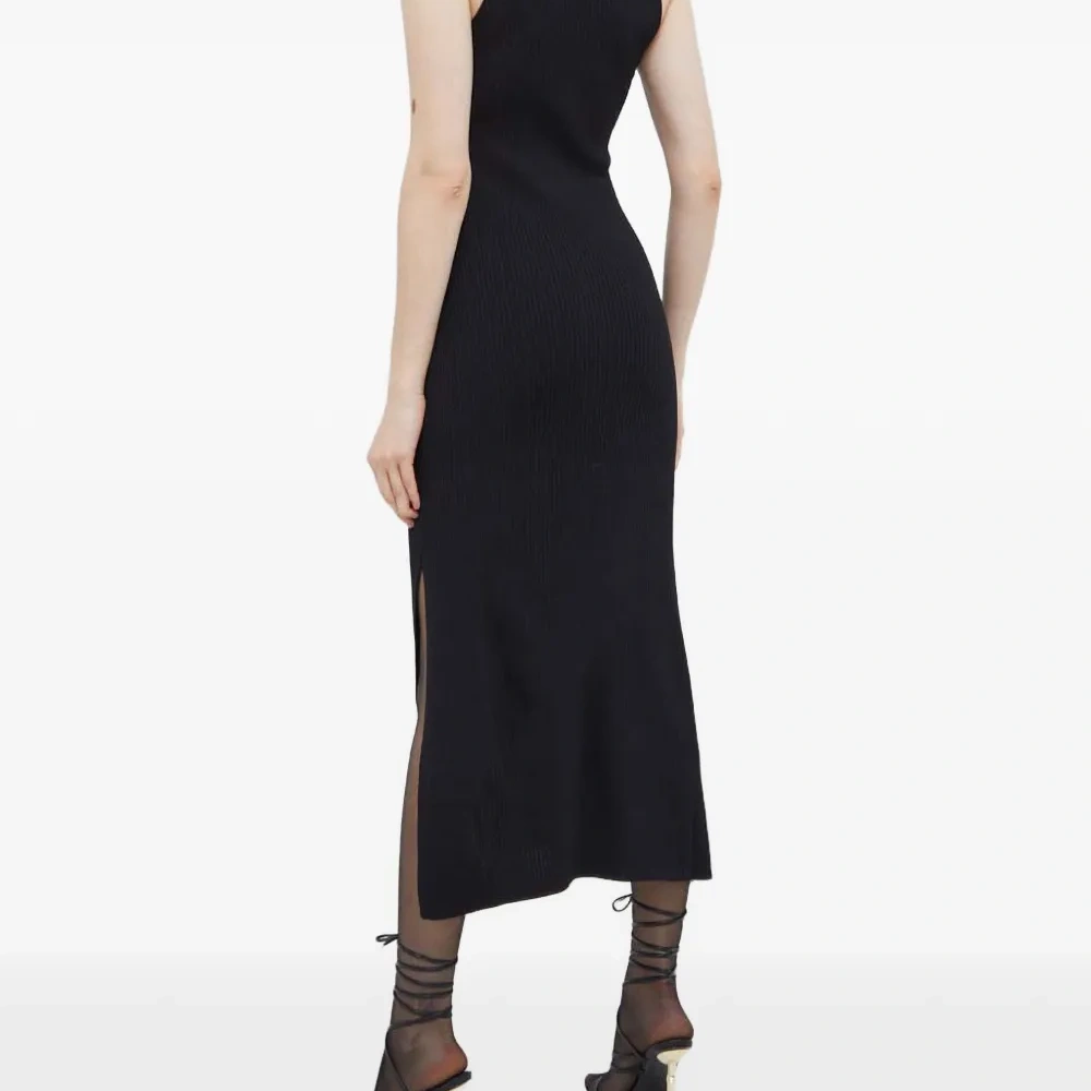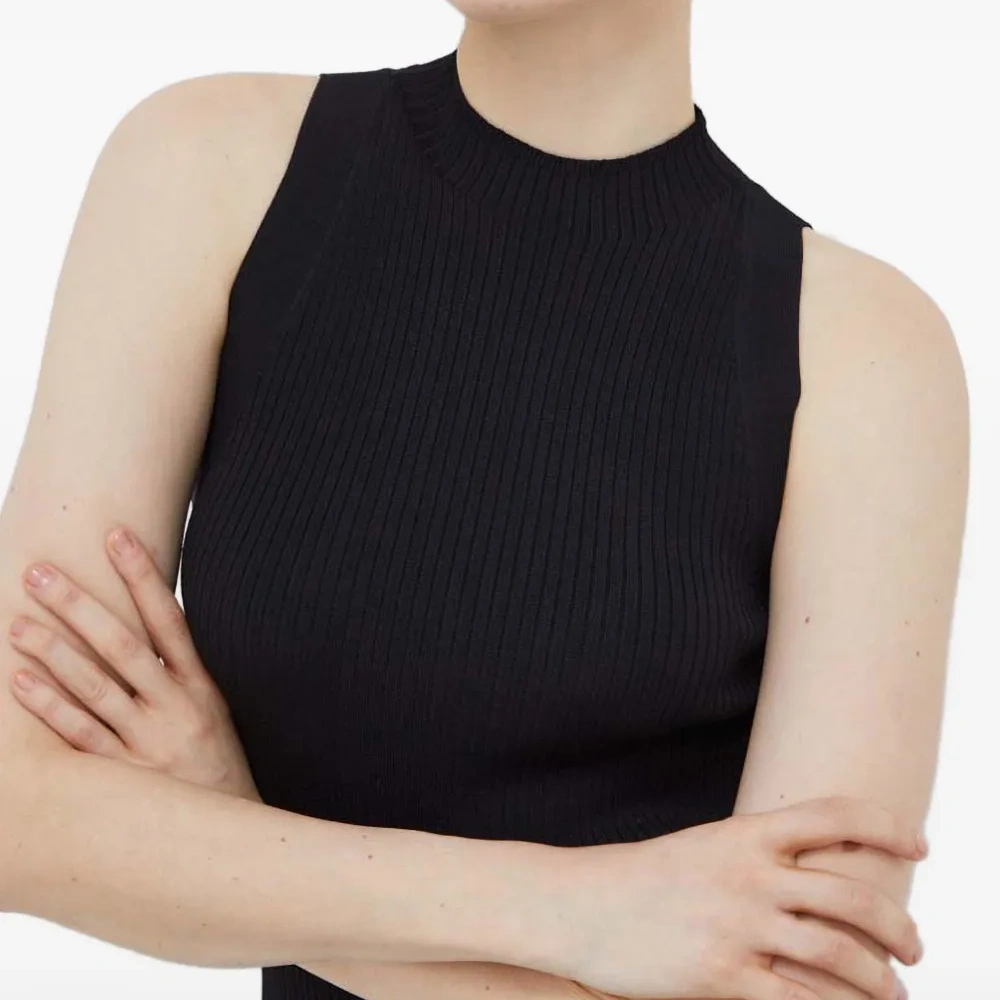 черная трикотажная майка без рукавов с разрезом сбоку