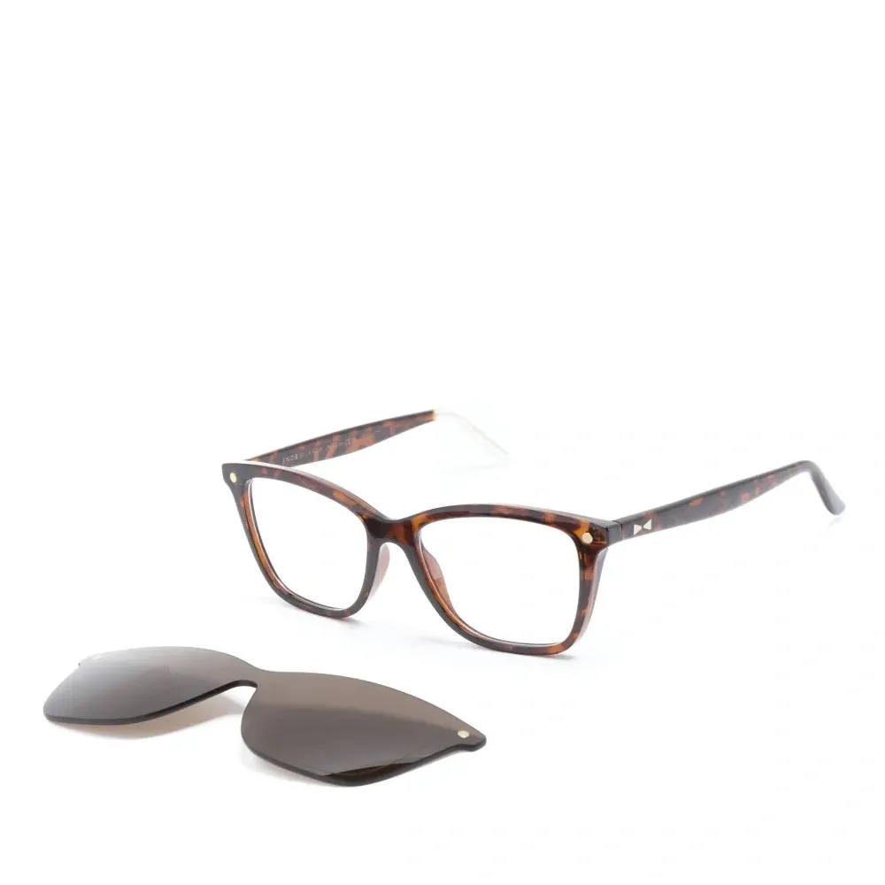 Коричневый, ацетат, оправа «бабочка», солнцезащитные клипсы, черепаховая расцветка, прямые дужки и дужки с закругленными концами. Обратите внимание, что на FARFETCH продаются оправы с линзами без диоптрий. В комплект входит защитный чехол для очков.