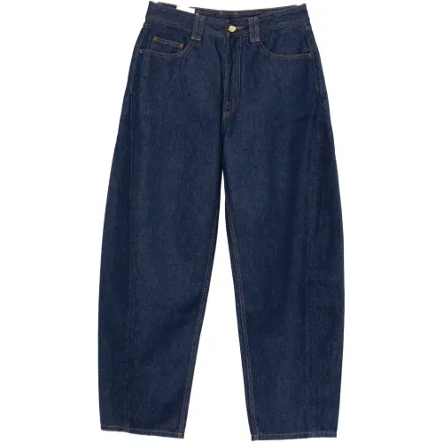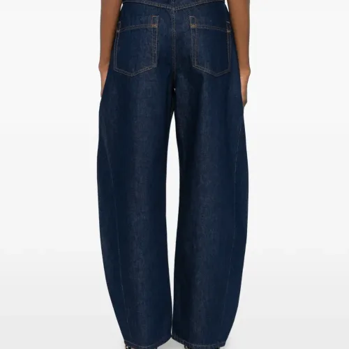 синий цвет, контрастная строчка, передние карманы, шлевки для ремня, свободный крой (баррель)