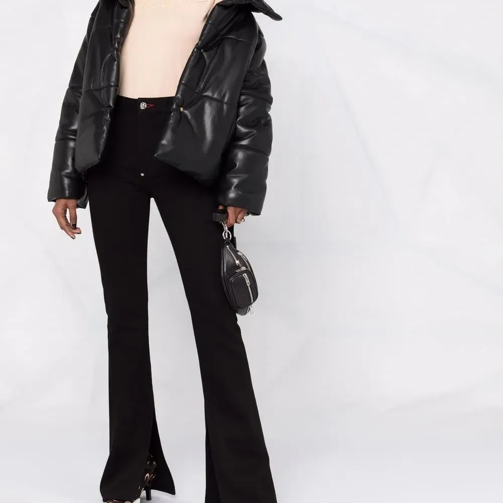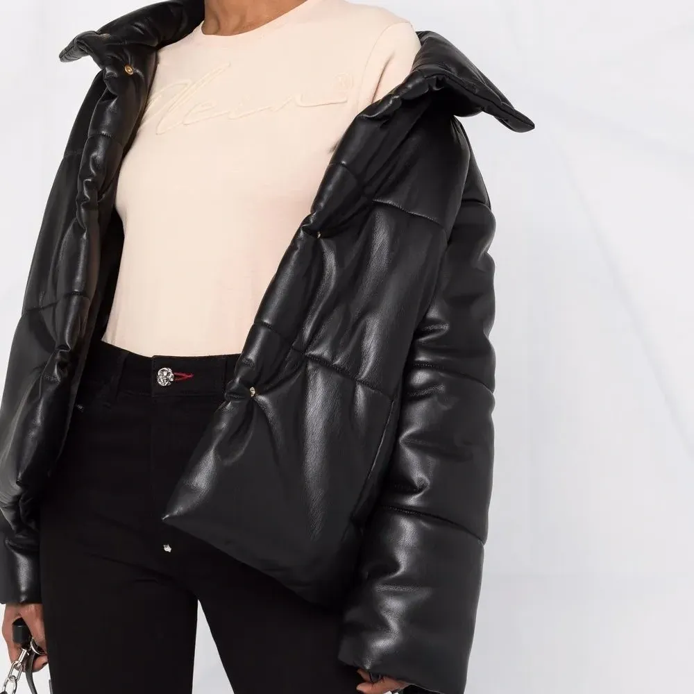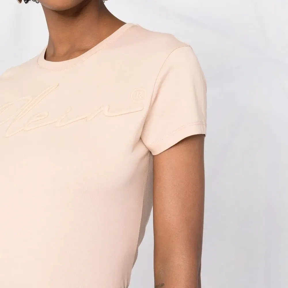 Сатиновая фактура, узкий крой, вышитый логотип спереди, круглый вырез, короткие рукава и прямой подол.