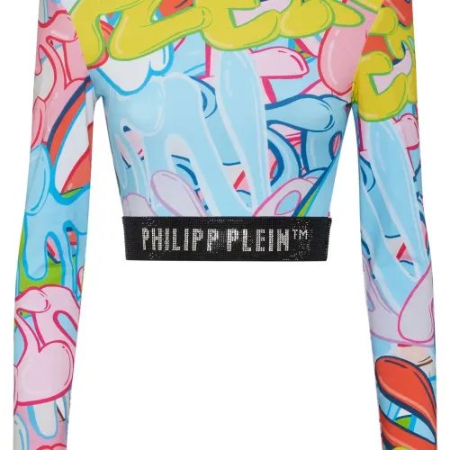 Padded Shoulder Cropped Top LS Bombing Graffiti