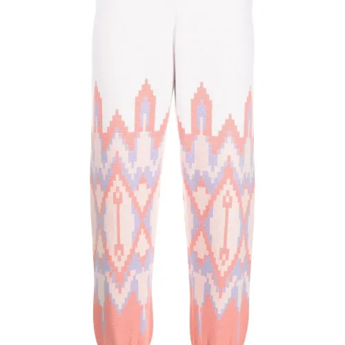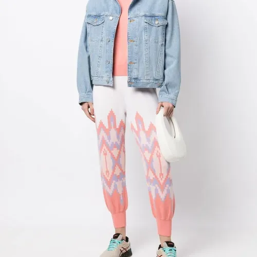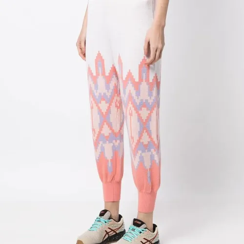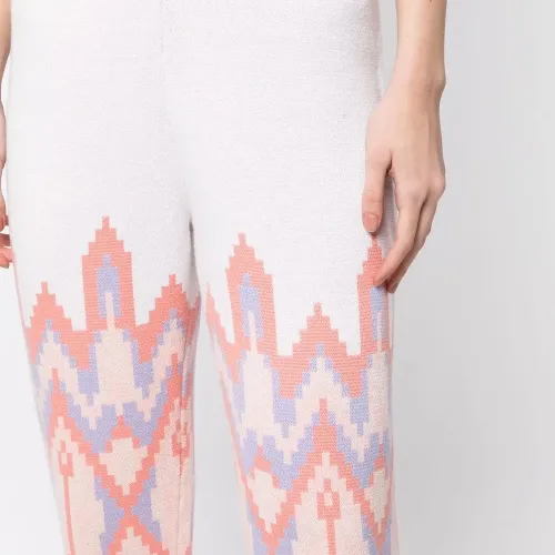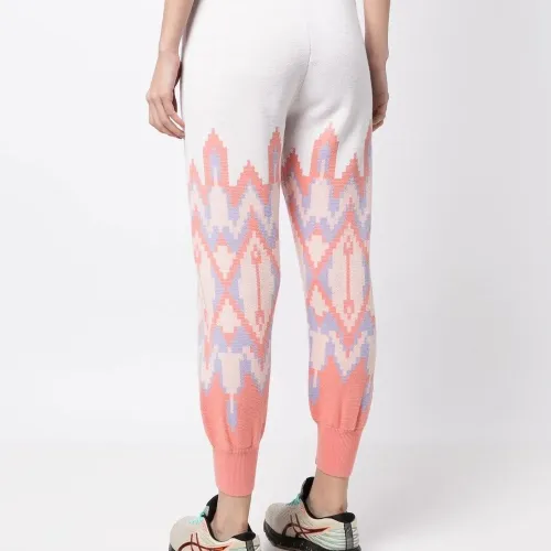 Белый, морковный, смесовый хлопок, вязаные края в рубчик, завышенная талия, зауженный крой и эластичные манжеты.