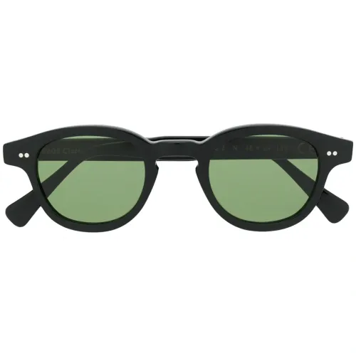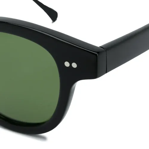 Массивные солнцезащитные очки от Epos. Прямые дужки с остро изогнутыми концами, застежка на шарнире, серебристые заклепки, темные линзы и гравировка логотипа. Цвет: зеленый.