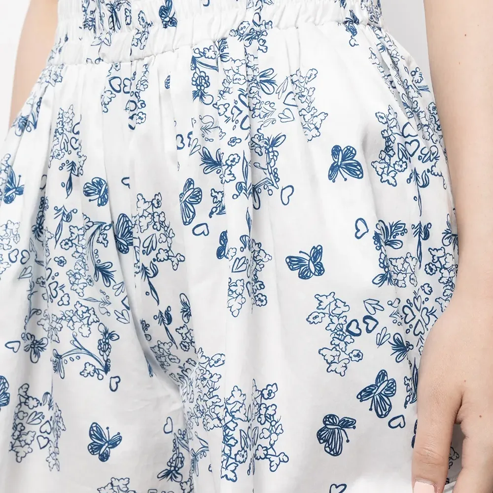 Принт с изображением бабочки, эластичный пояс, плиссировка и закругленный подол.