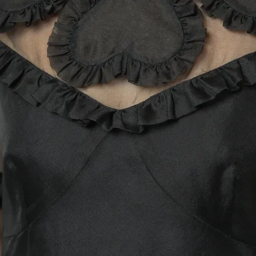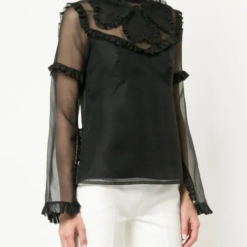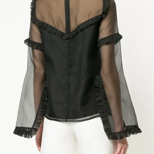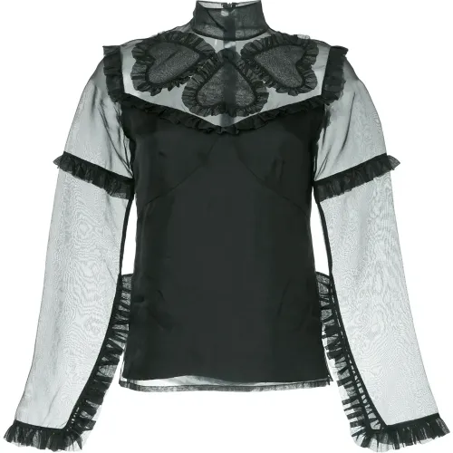Черный шелковый топ 'Queen of Hearts' с деталями из органзы от macgraw. Длинные рукава, отделка с гофром, свободный крой.