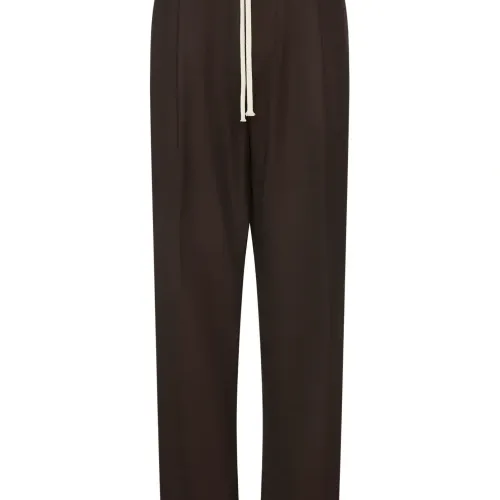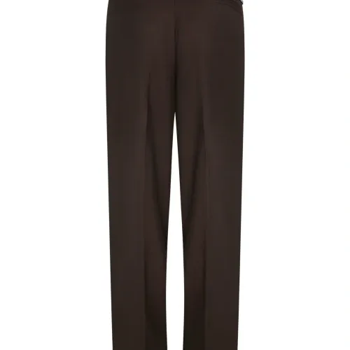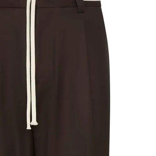 коричневые брюки с завязками, шлевками для пояса и задним прорезным карманом