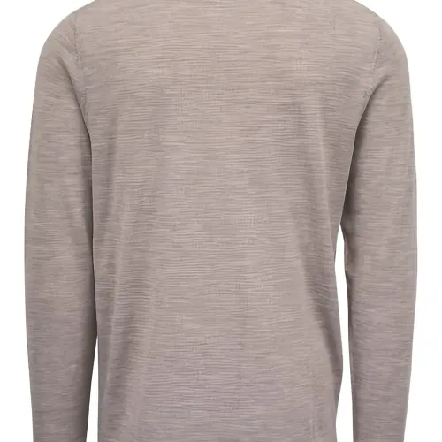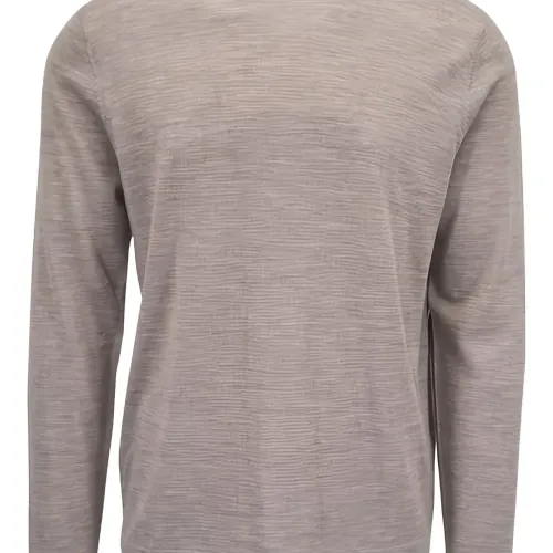 коричневый джемпер из мериносовой шерсти с круглым вырезом, длинными рукавами, ребристыми манжетами и ребристым нижним краем