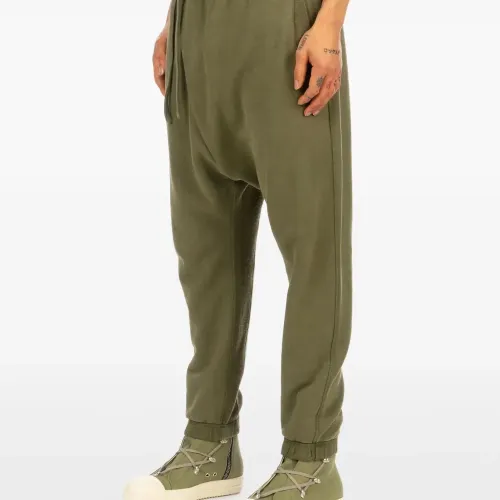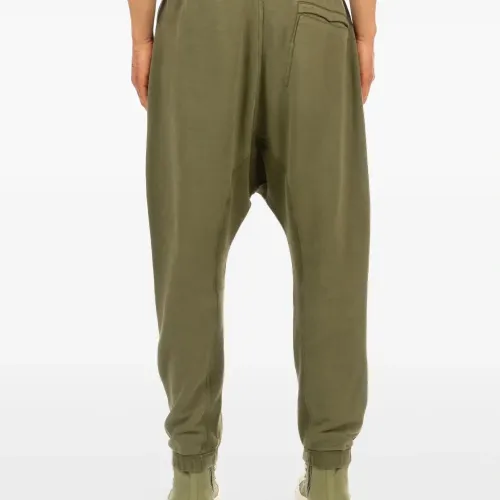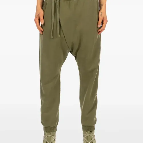 оливково-зелёные брюки с завязками на талии, манжетами на штанинах, заниженной посадкой и асимметричной застёжкой