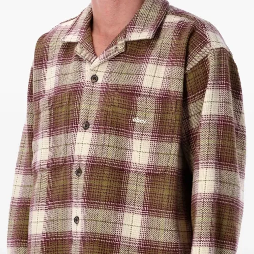 узор в клетку цвета мха, нагрудный карман, застежка на пуговицы, отложной воротник, длинные рукава