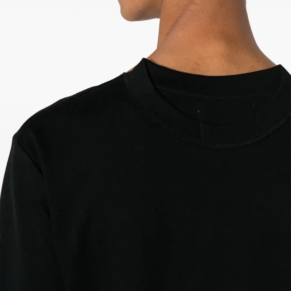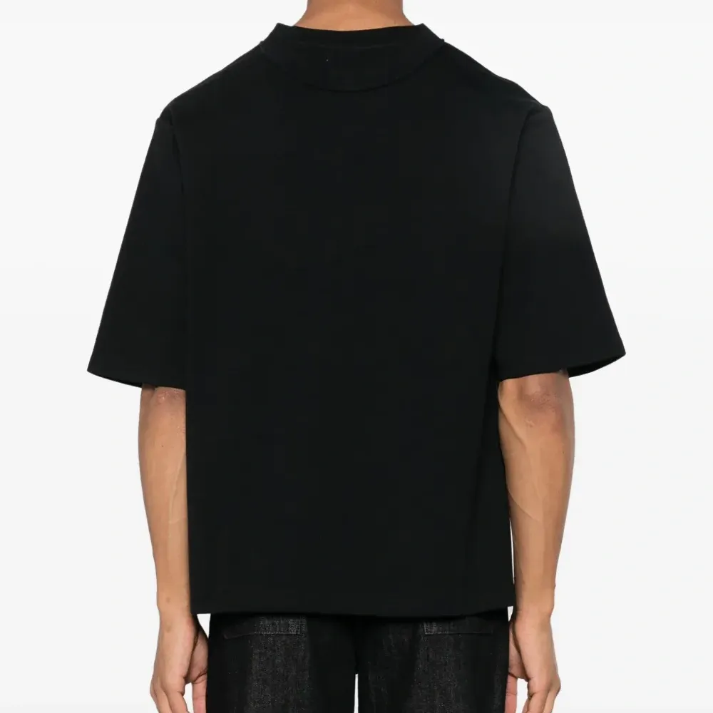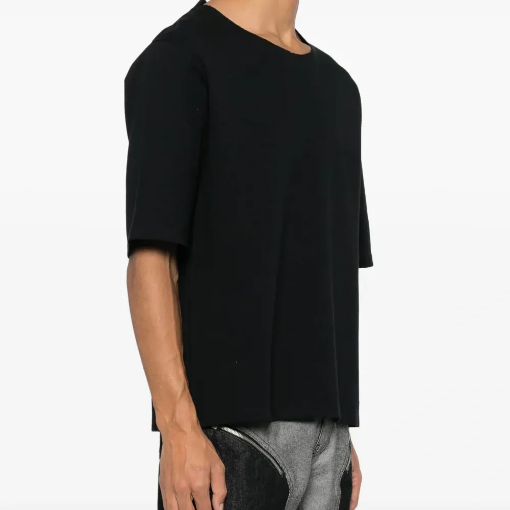 Черный, хлопок, многослойный дизайн, круглый вырез, короткие рукава и прямой подол.