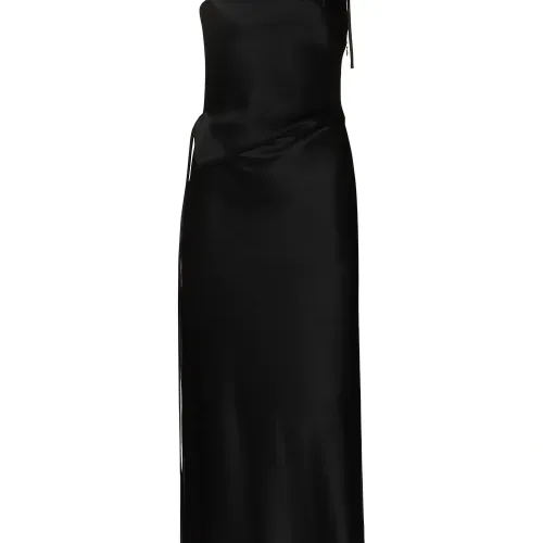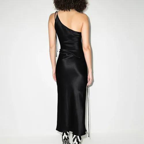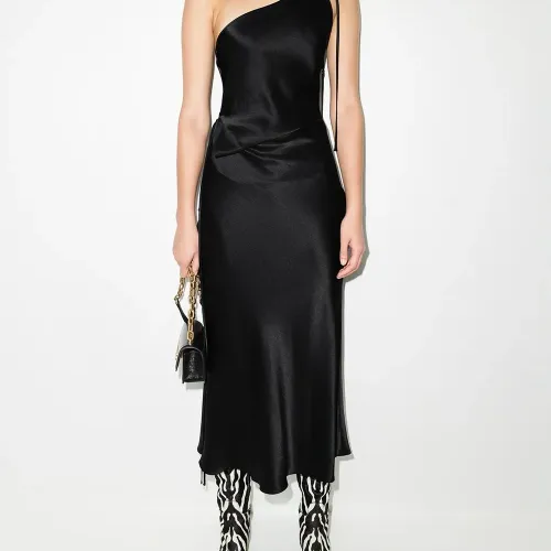 Асимметричная форма, модель на одном плече и длина миди. Цвет: черный.