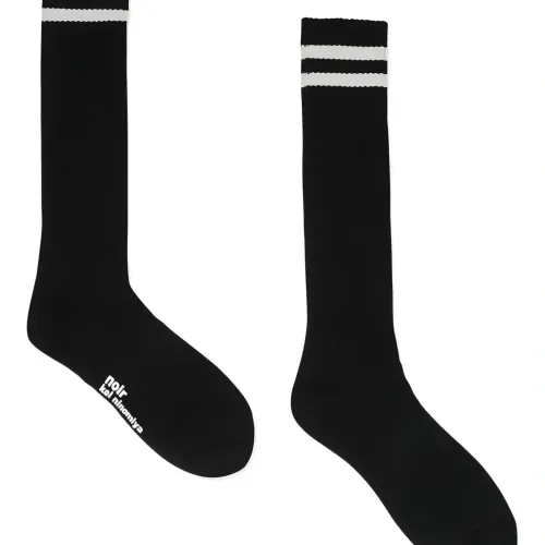 черные носки с полосатыми деталями и принтом логотипа