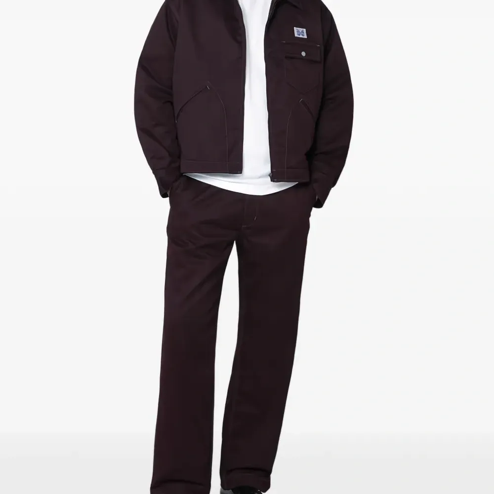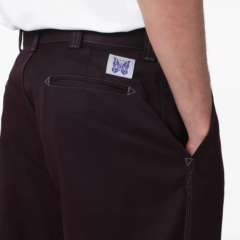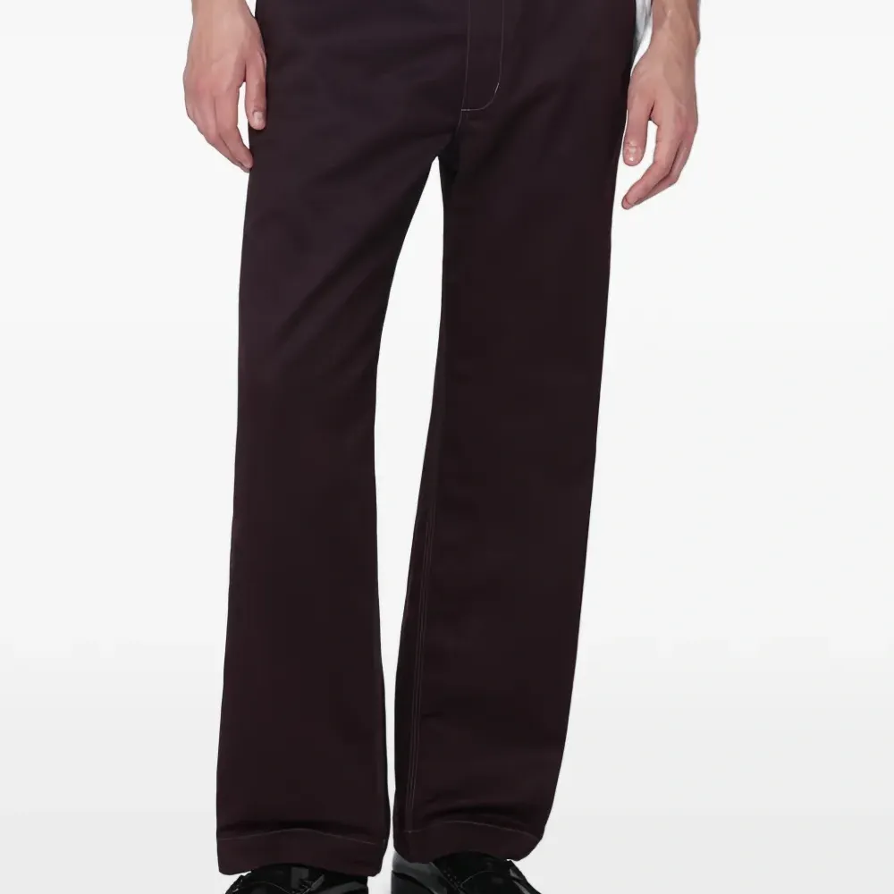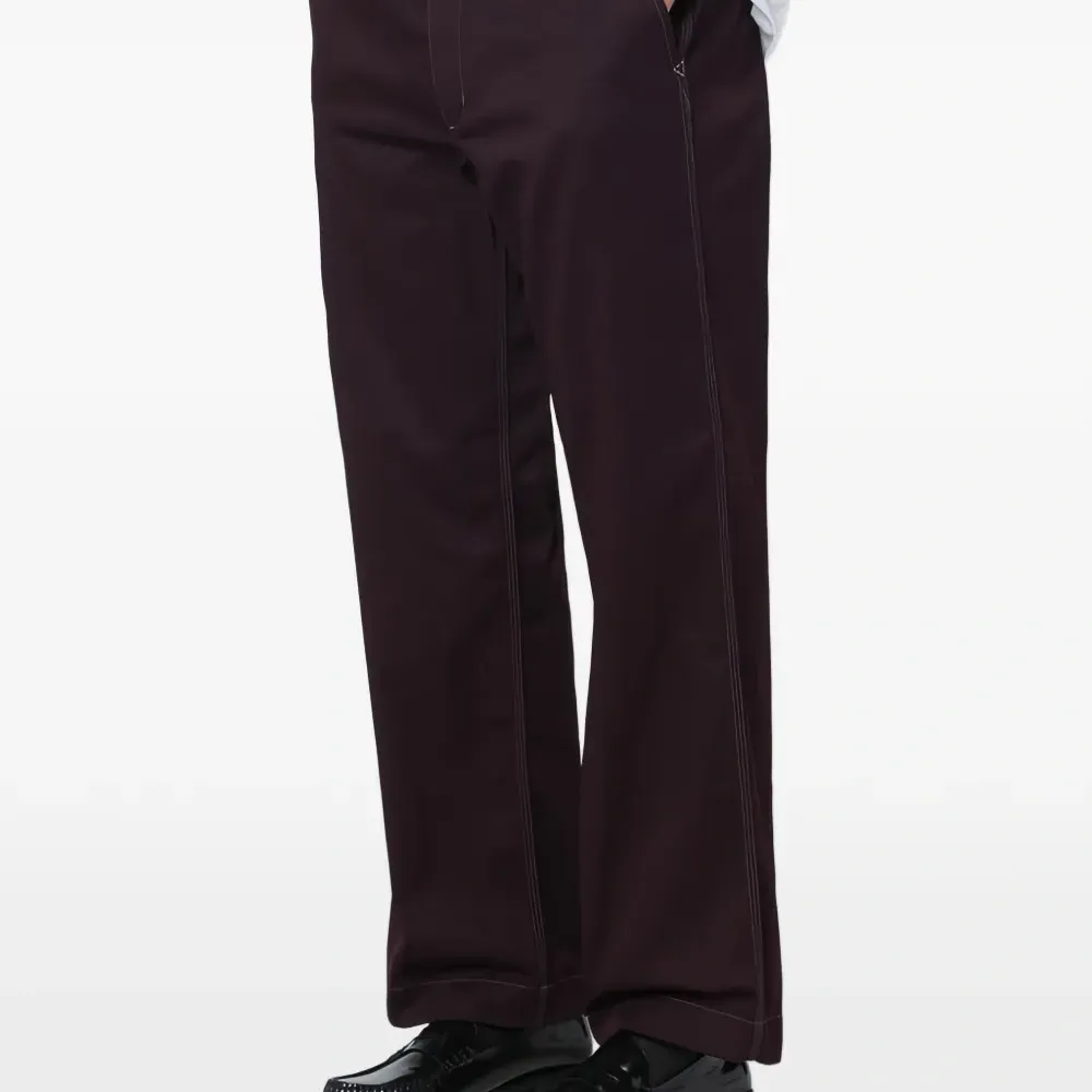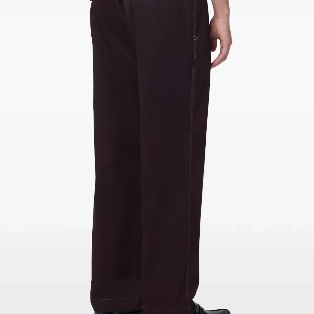 бордовые (бургунди) брюки с контрастной прострочкой, задней нашивкой и прорезным карманом сзади